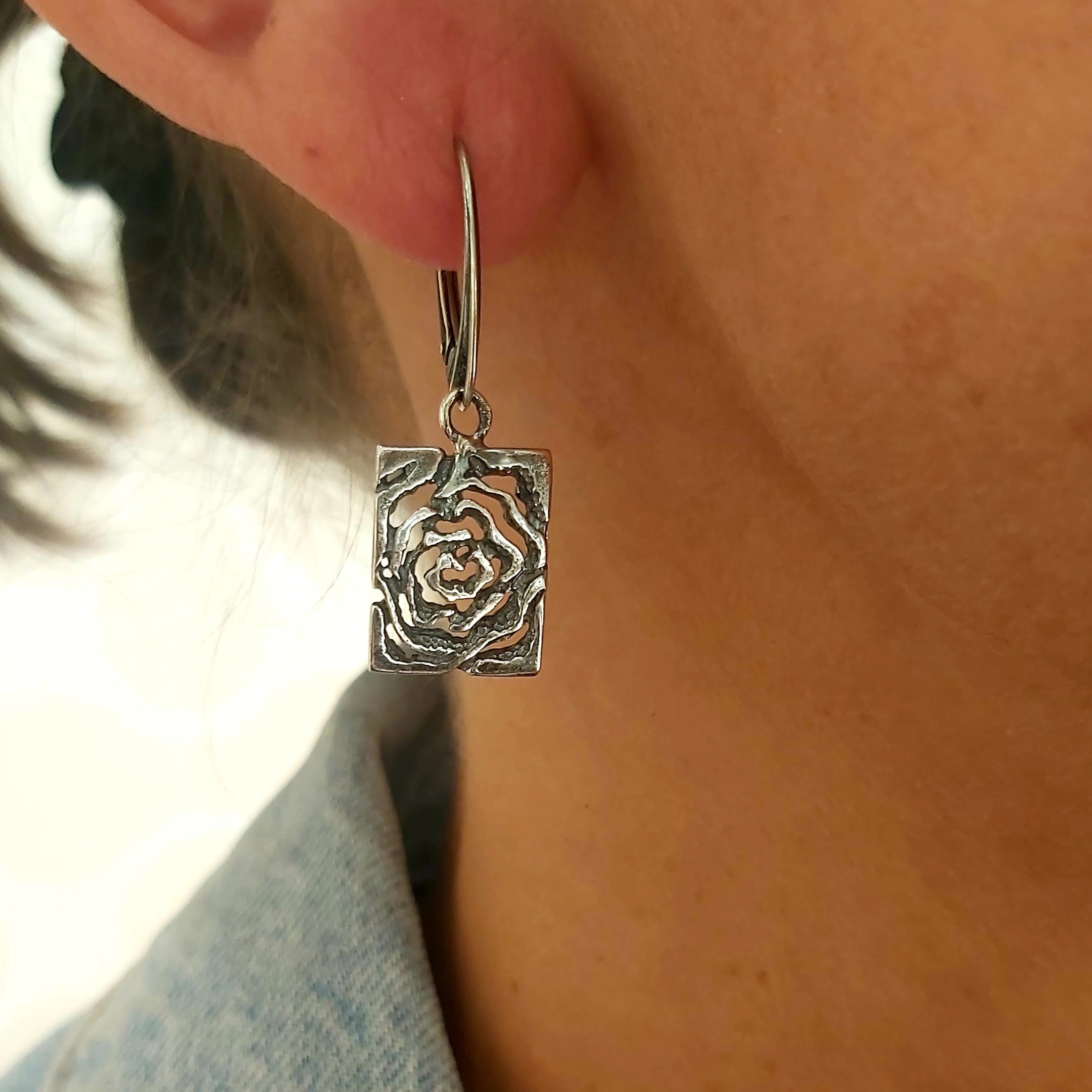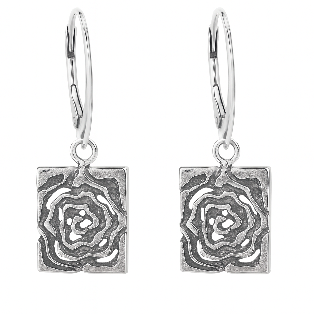 Kolczyki srebrne oksydowane- motyw róży