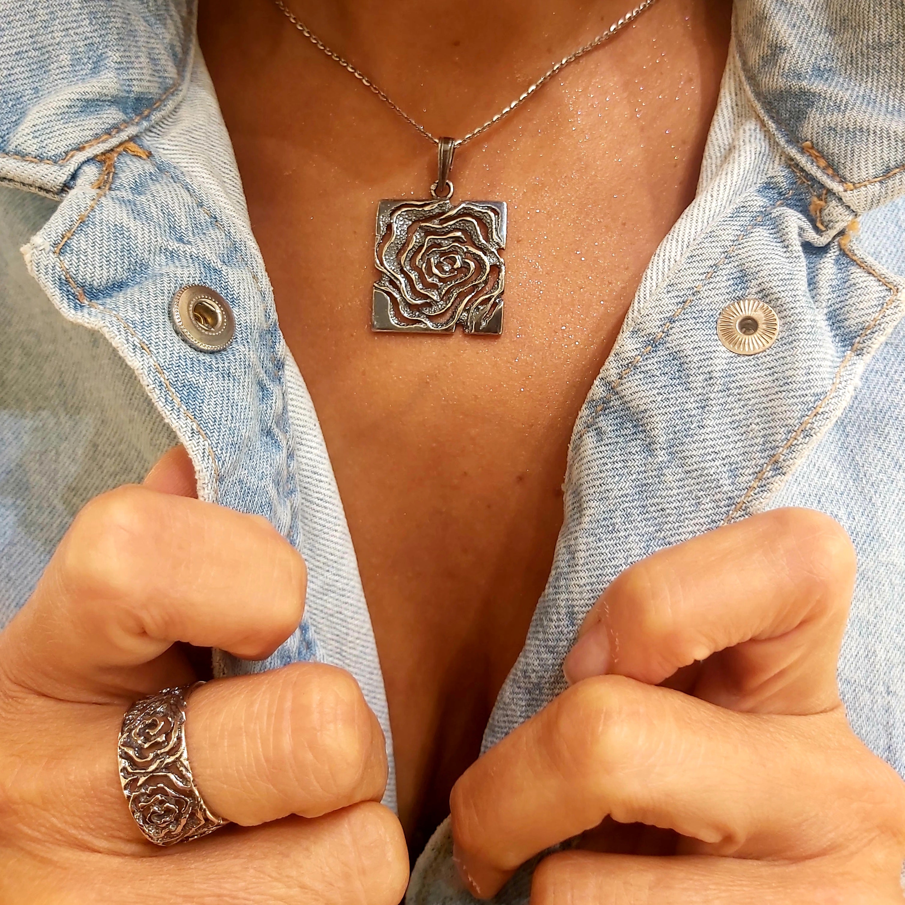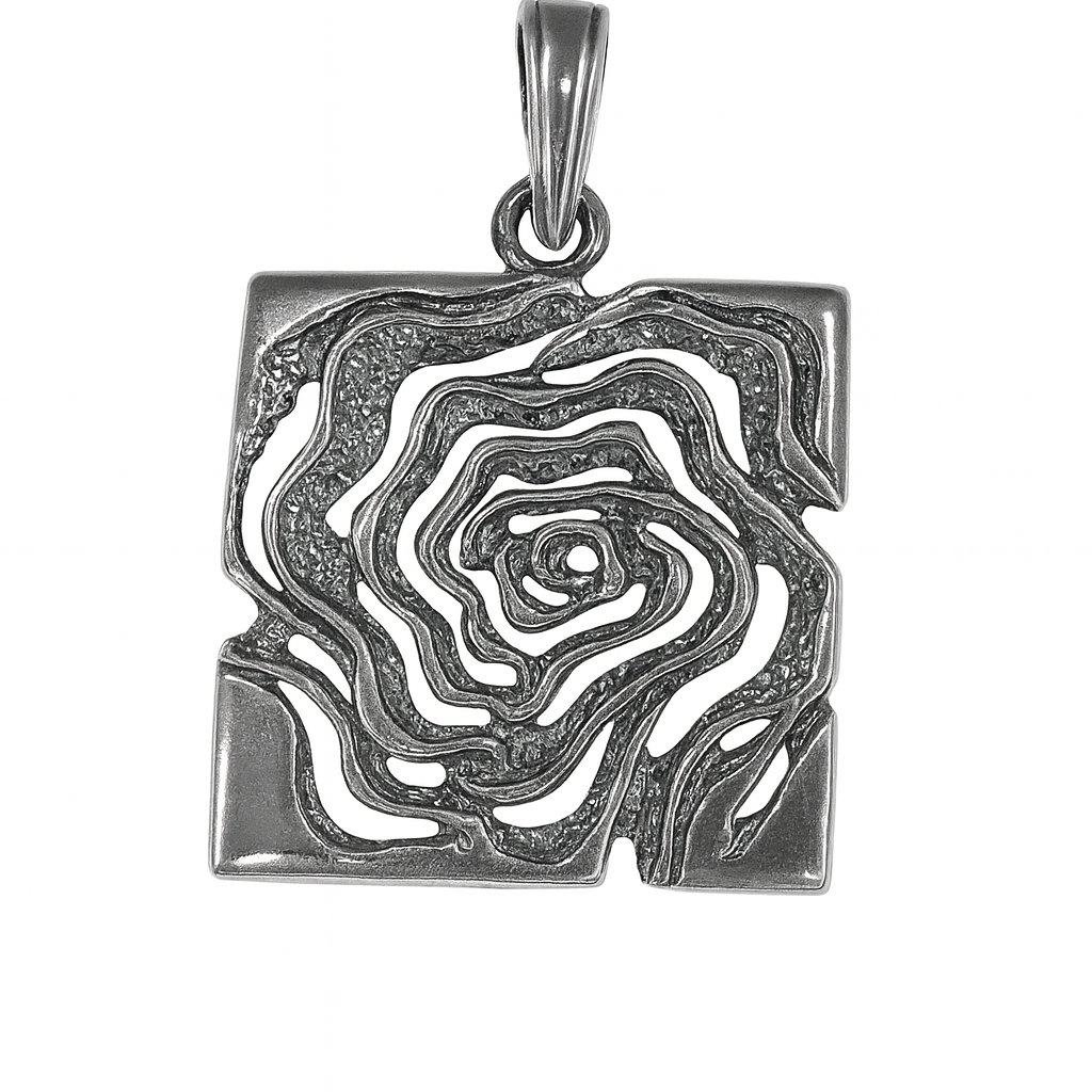 Zawieszka srebrna oksydowana- motyw róży