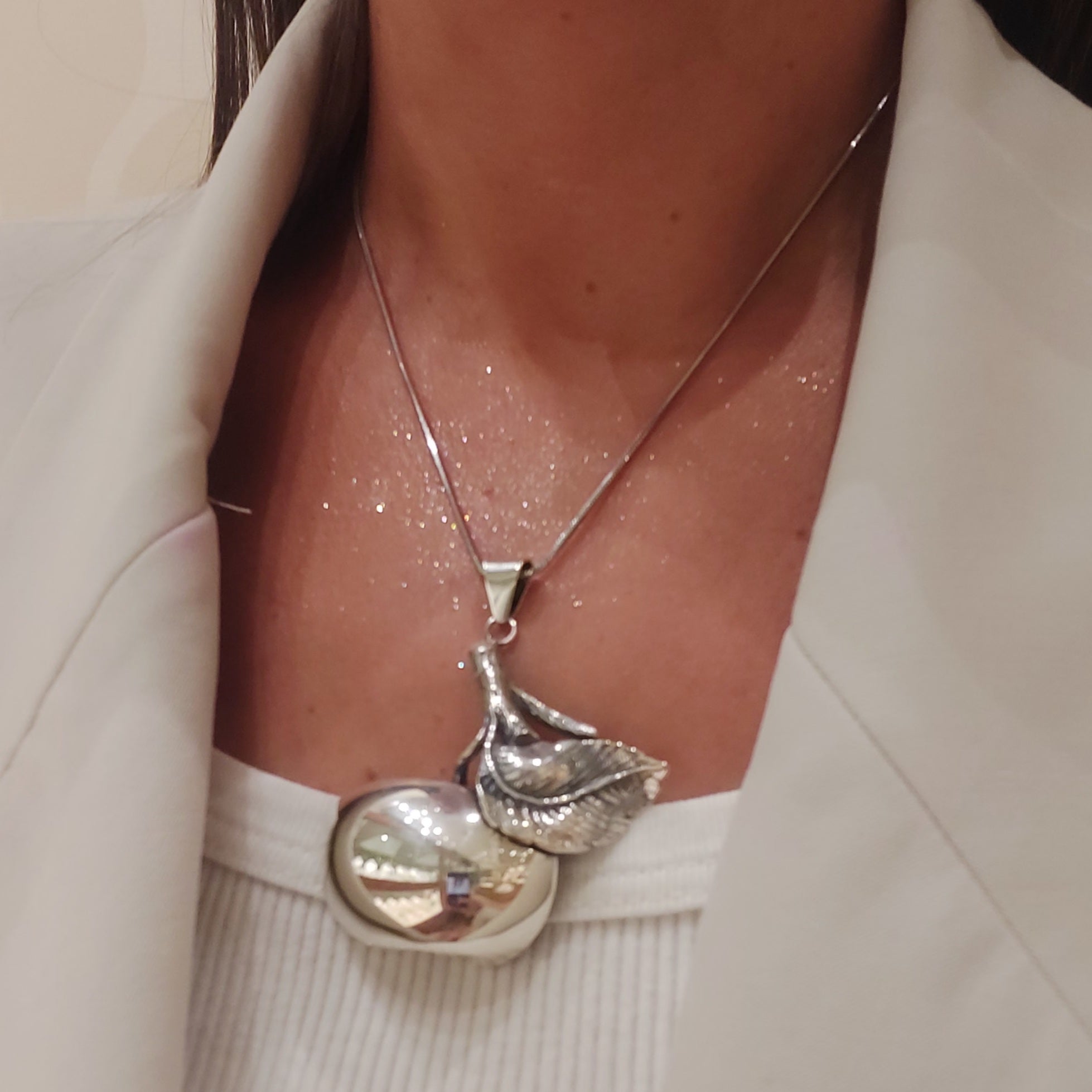 Zawieszka srebrna duża oksydowane jabłko