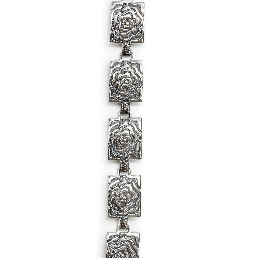Bransoletka srebrna oksydowana- motyw róży