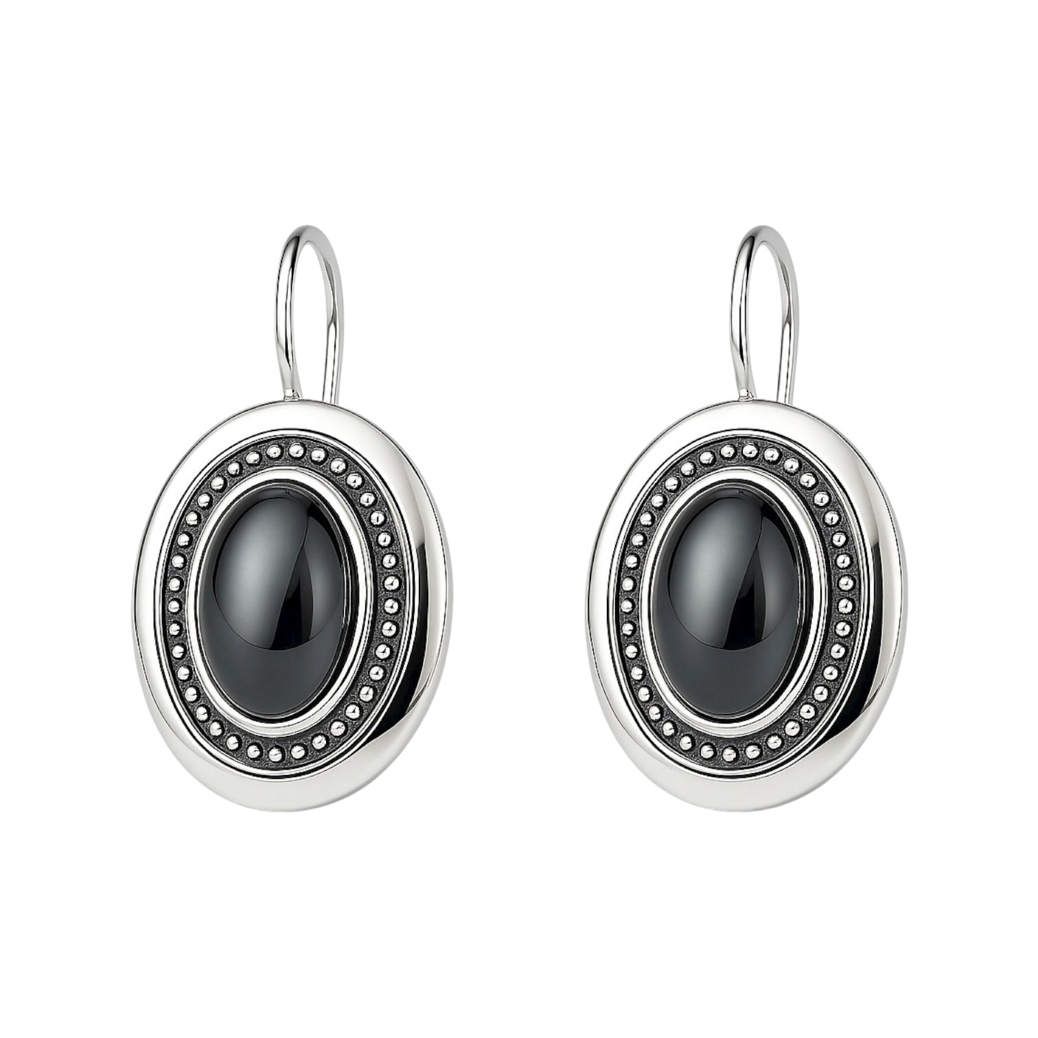 Srebrne kolczyki z hematytem w grawerowanej oprawie