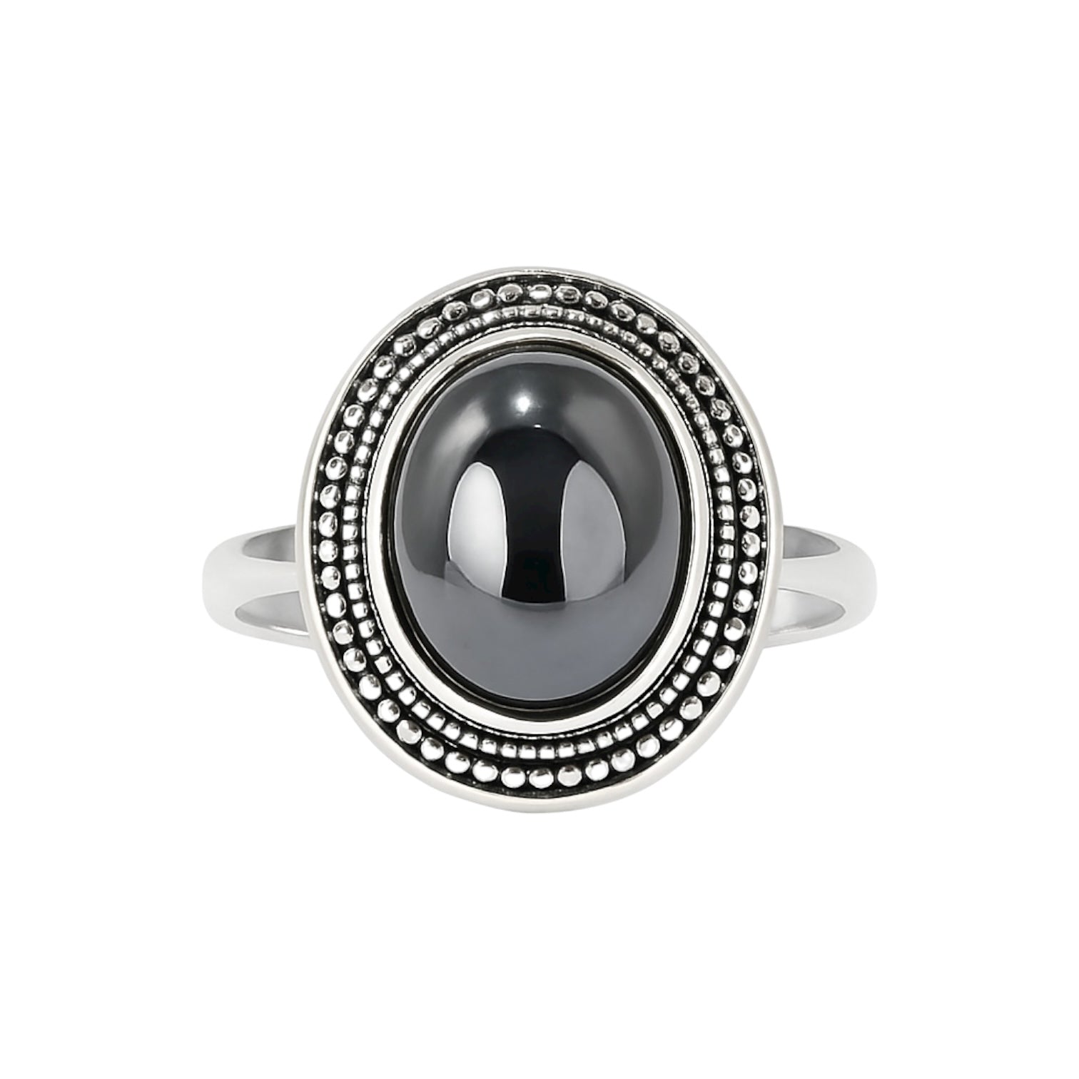 Pierścionek srebrny mały z naturalnym hematytem w grawerowanej oprawie