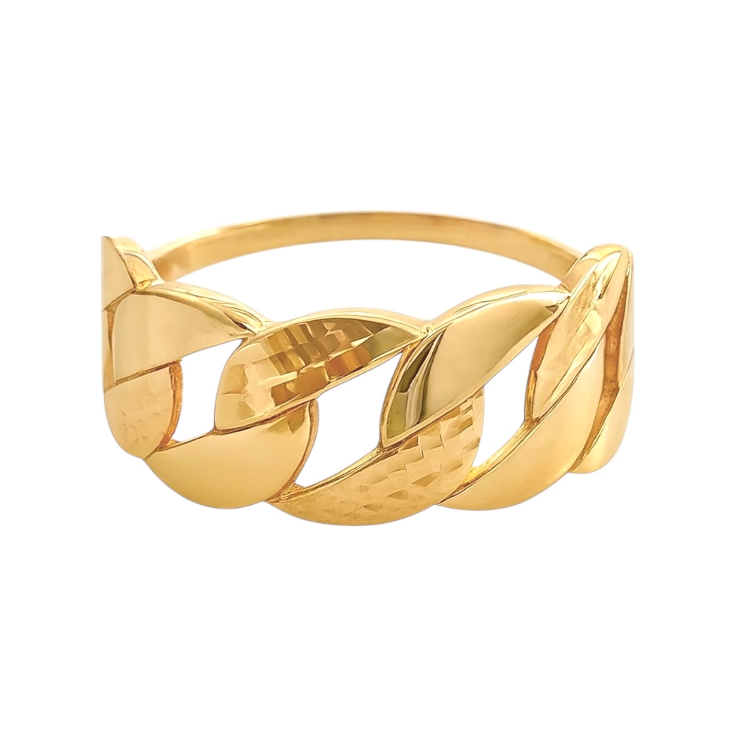 Szeroki pierścionek złoty ażurowy ze zdobieniem z białego złota