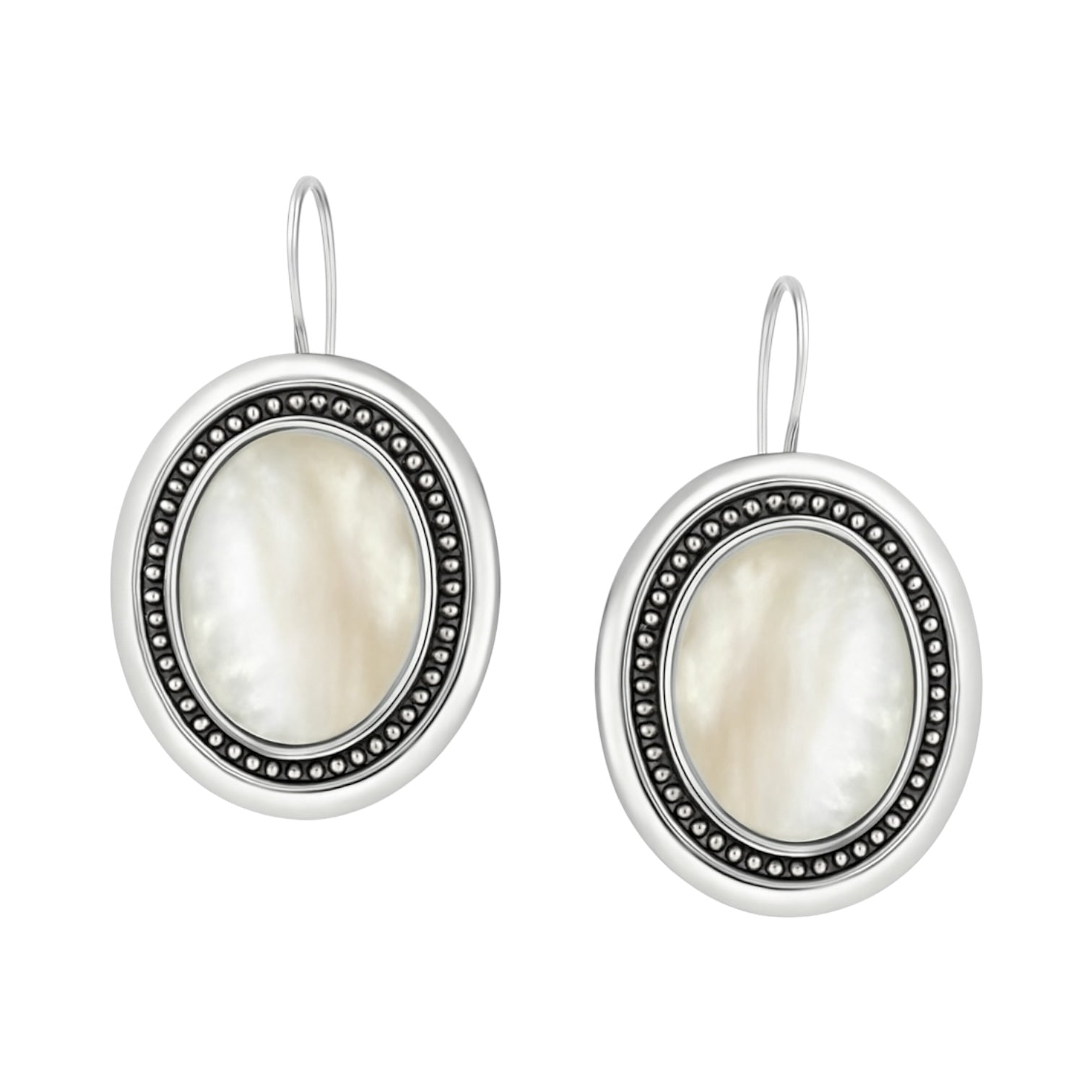 Kolczyki duże owalne z oksydowanego srebra z masą perłową