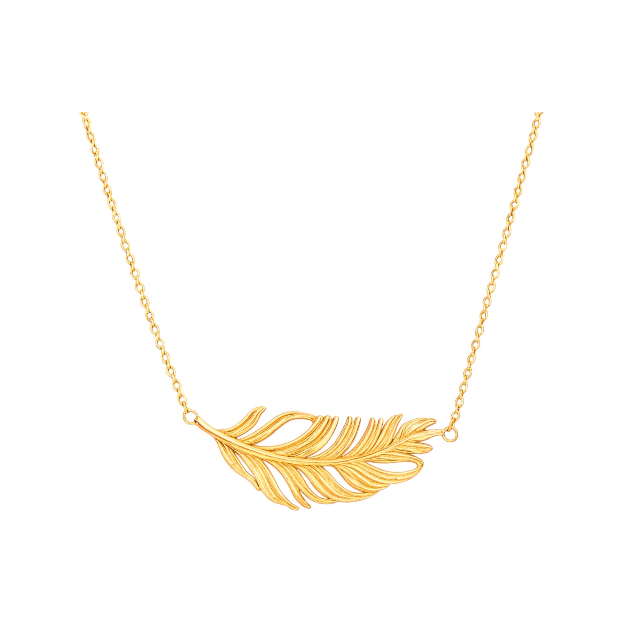 Naszyjnik złoty na łańcuszku typu ankier z motywem pióra
