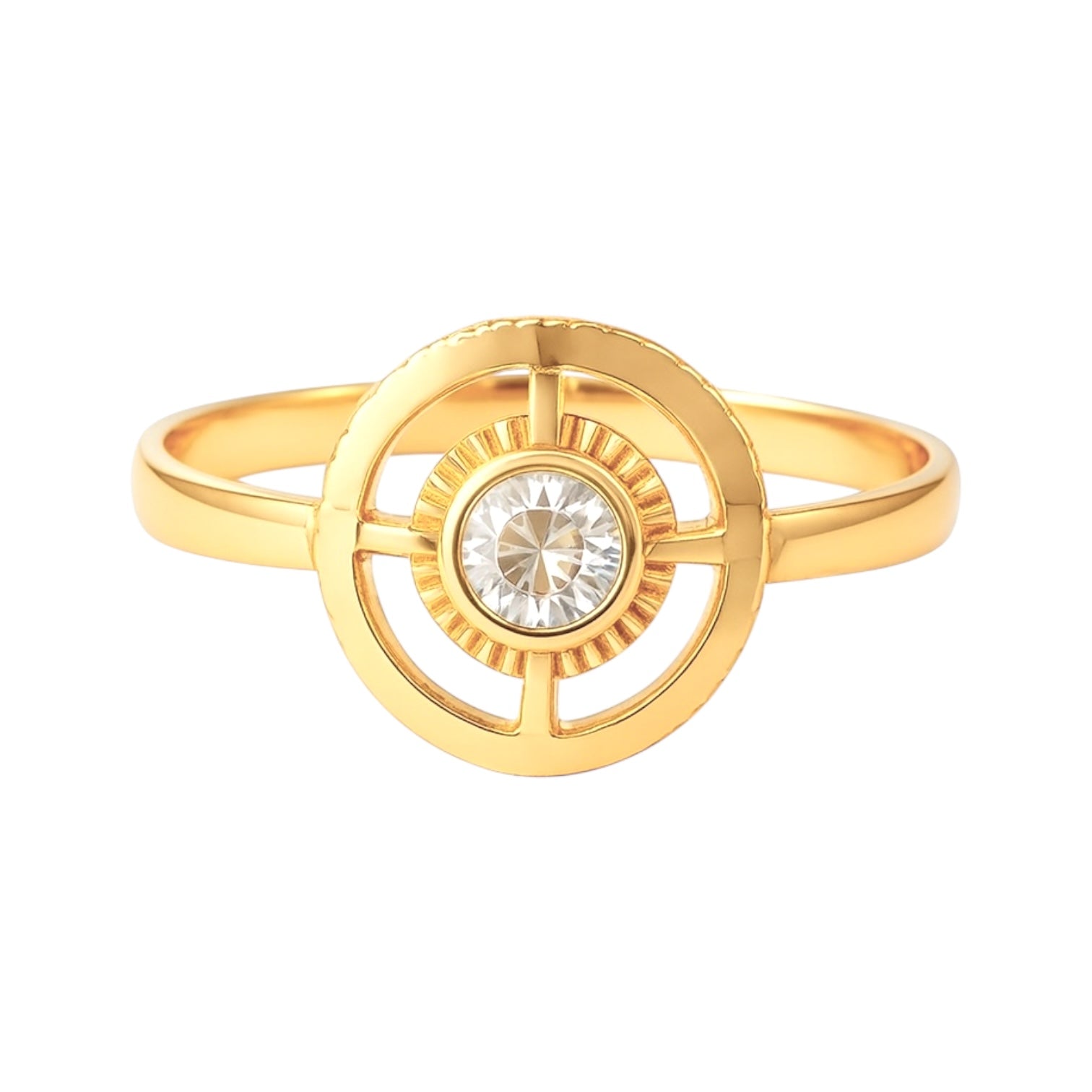Pierścionek złoty z cyrkonią w geometrycznym wzorze