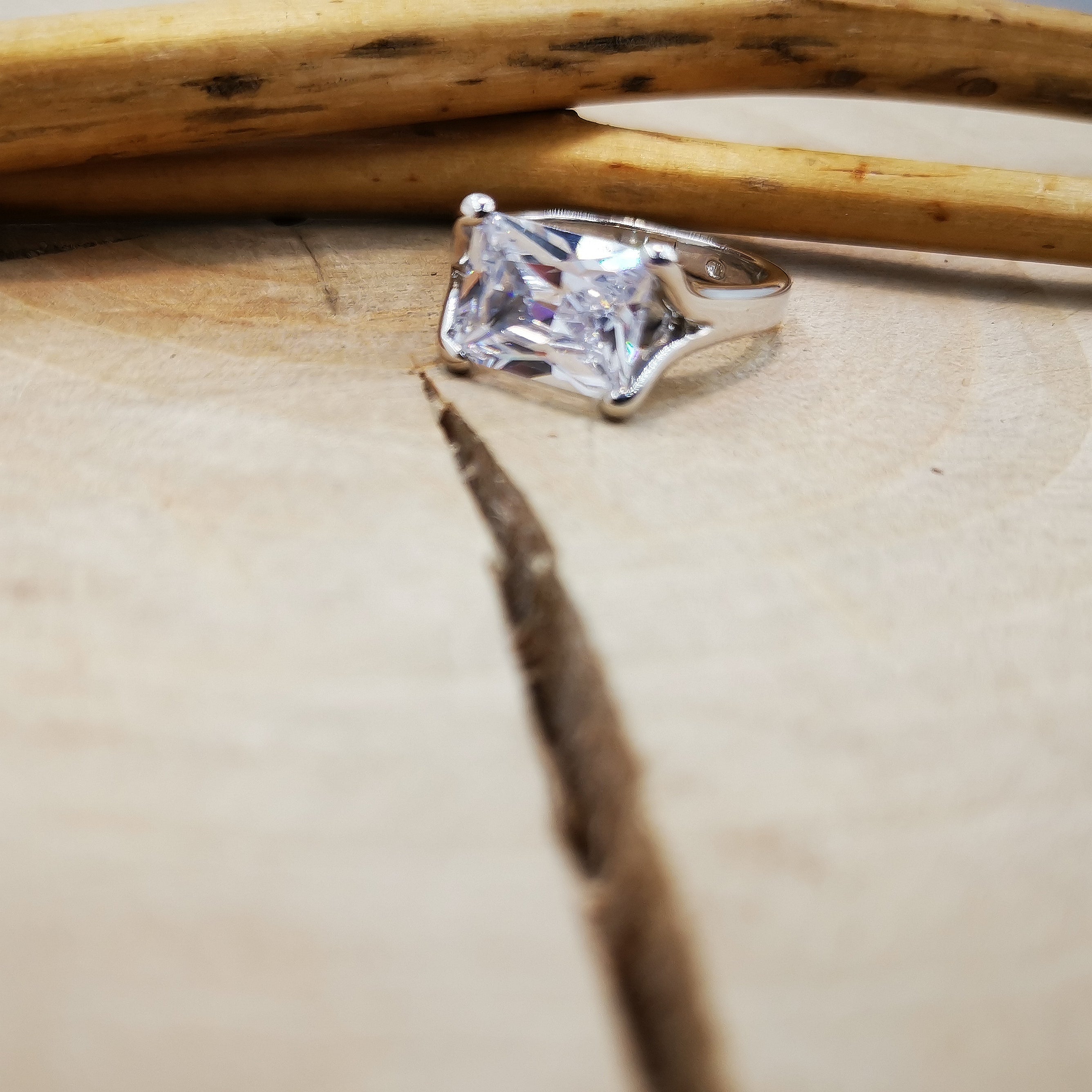 Pierścionek srebrny z prostokątną cyrkonią