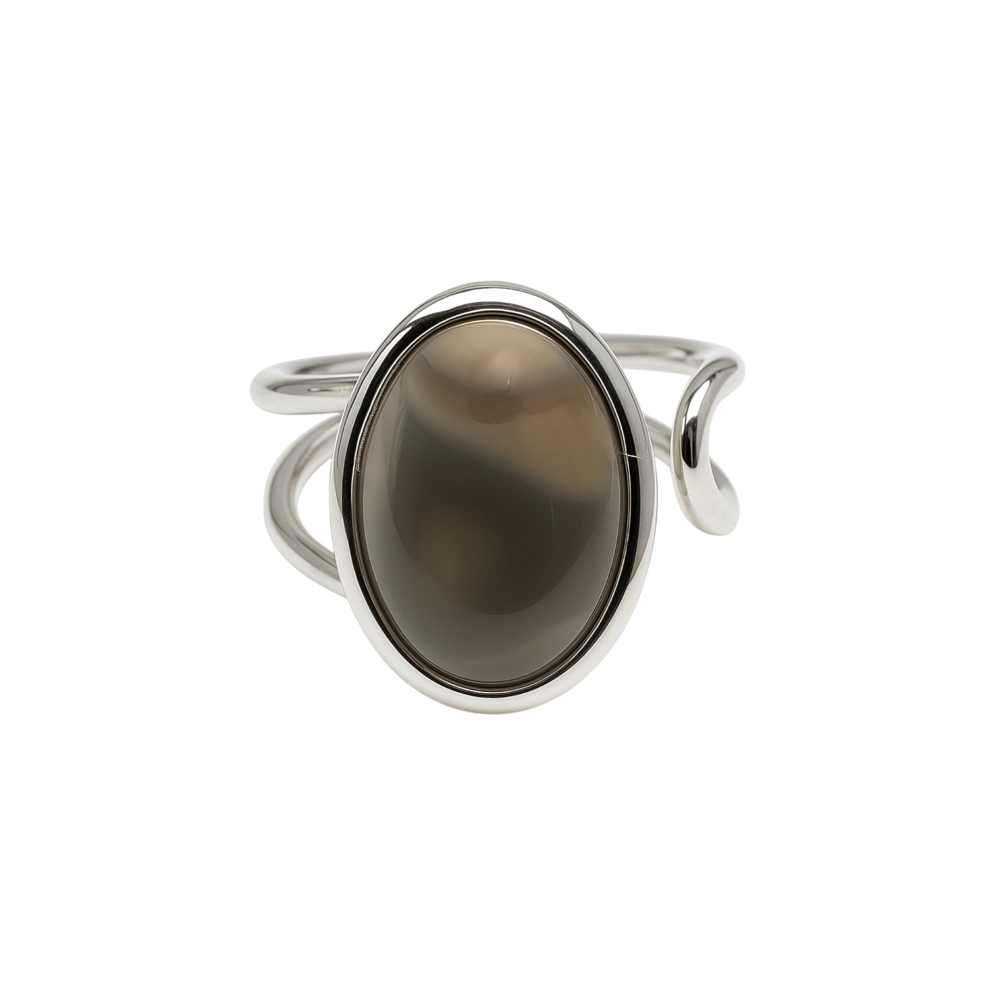 Srebrny pierścionek owalny z krzemieniem pasiastym