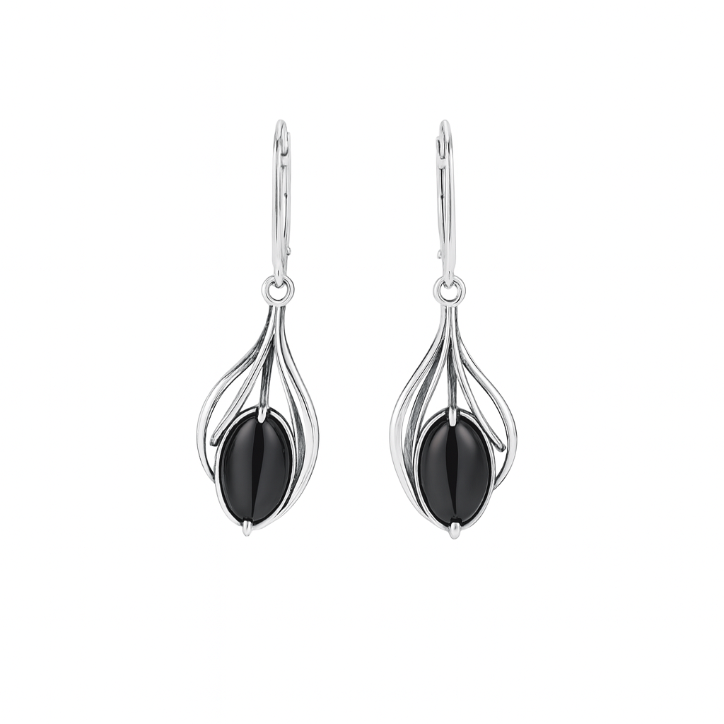 Srebrne kolczyki artystyczne z czarnym kwarcem
