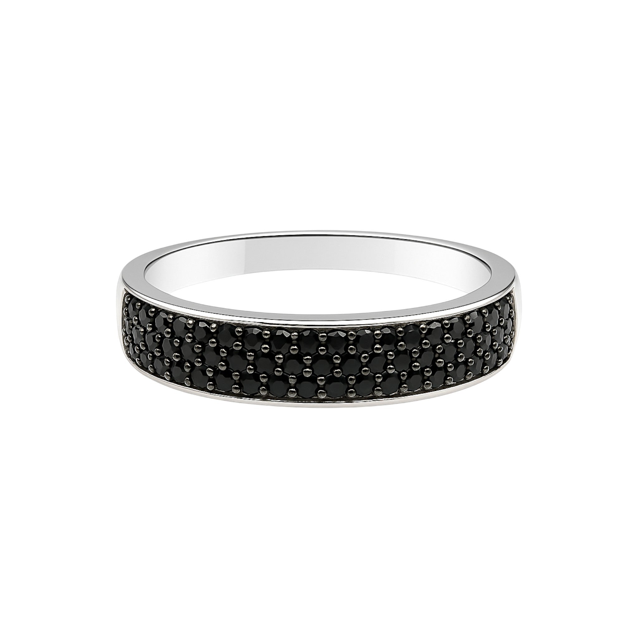 Pierścionek srebrny obrączkowy z rzędami czarnych cyrkonii