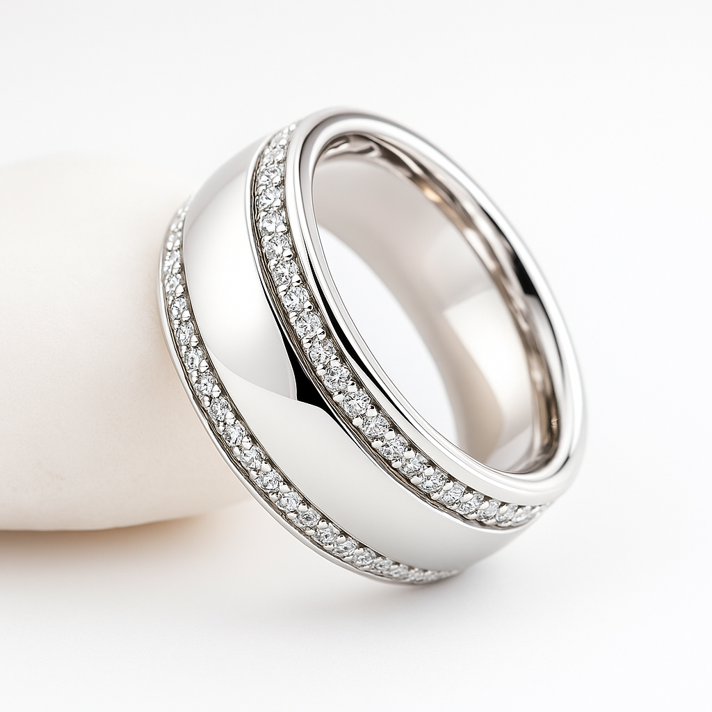 Pierścionek srebrny obrączkowy z rzędami cyrkonii