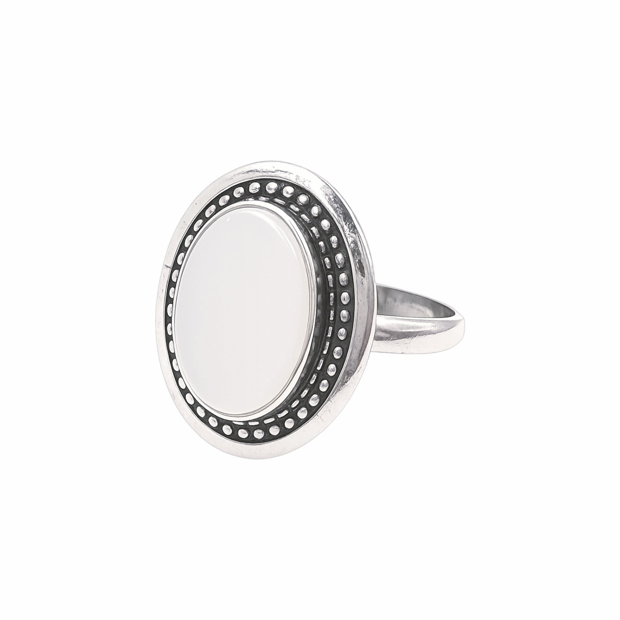 Pierścionek mały z oksydowanego srebra z masą perłową