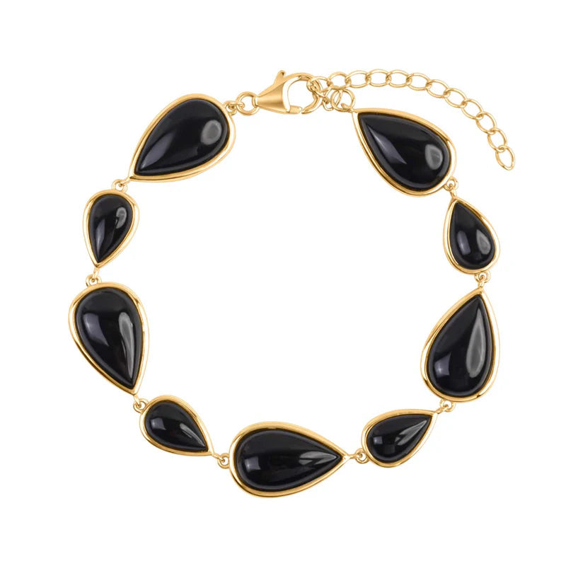 Srebrna pozłacana bransoletka łańcuszkowa z czarnymi kulkami
