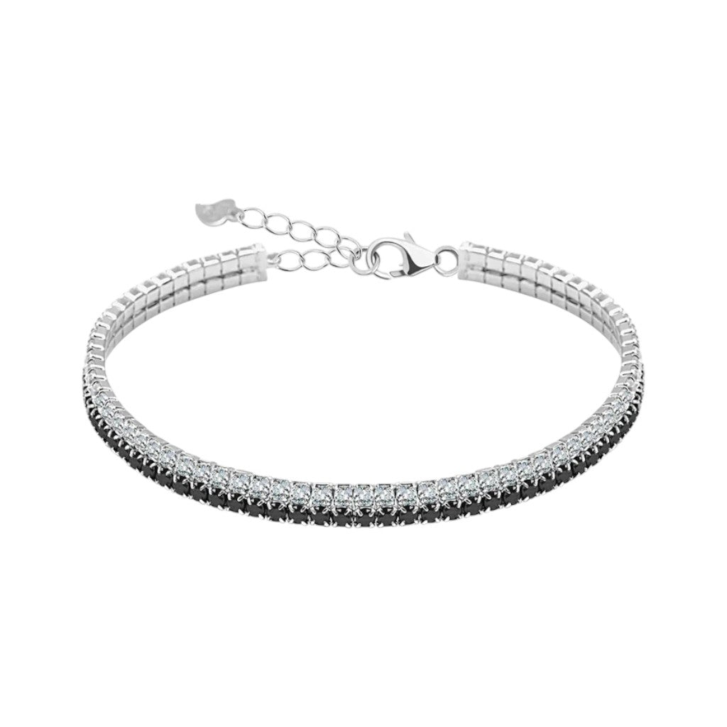 Srebrna bransoletka z podwójnym rzędem czarno-białych cyrkonii