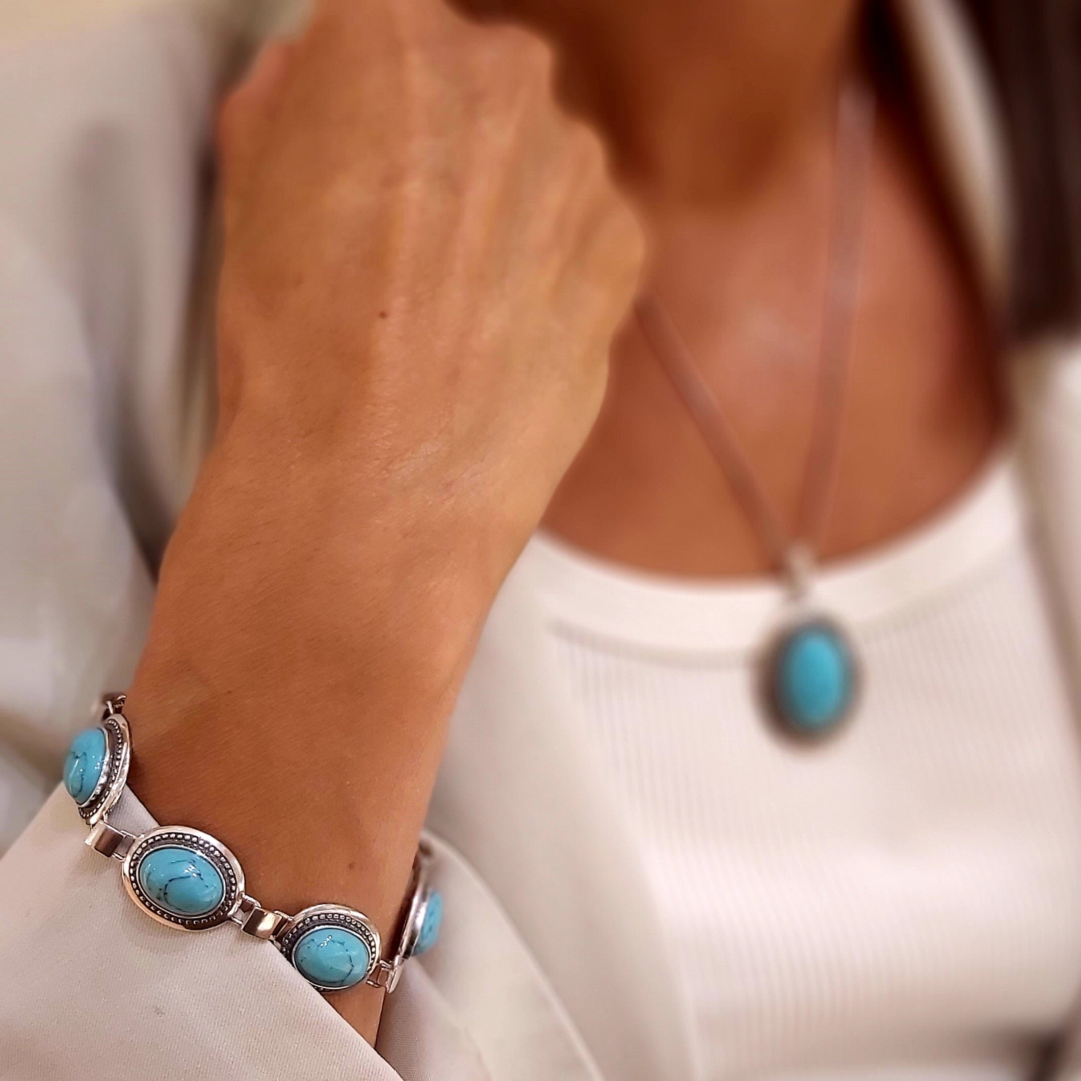 Bransoletka srebrna z turkusem w grawerowanej oprawie