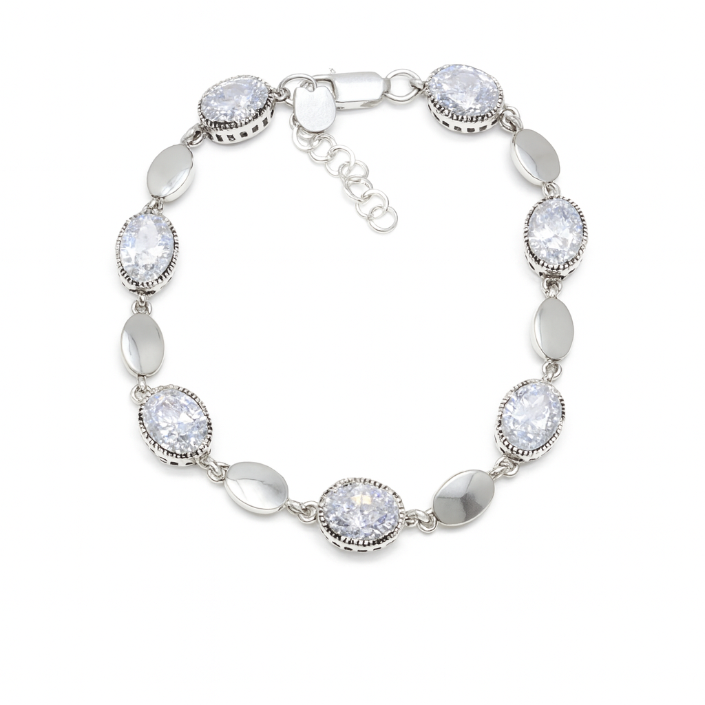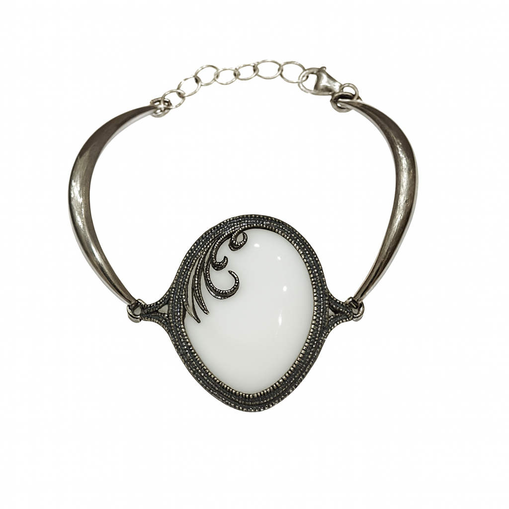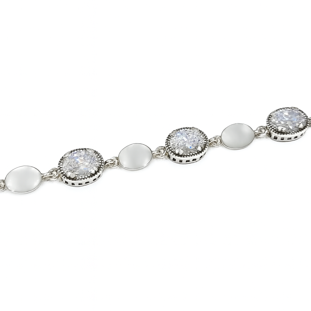 Srebrna bransoletka z masą perłową i cyrkoniami