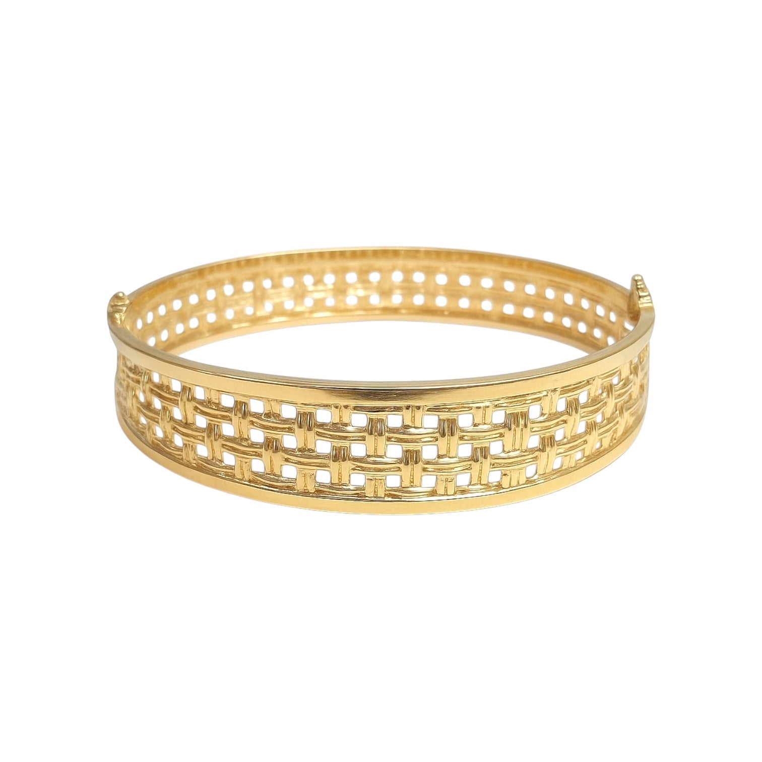 Bransoletka złota sztywna z dwukolorowego złota z ozdobnym wzorem
