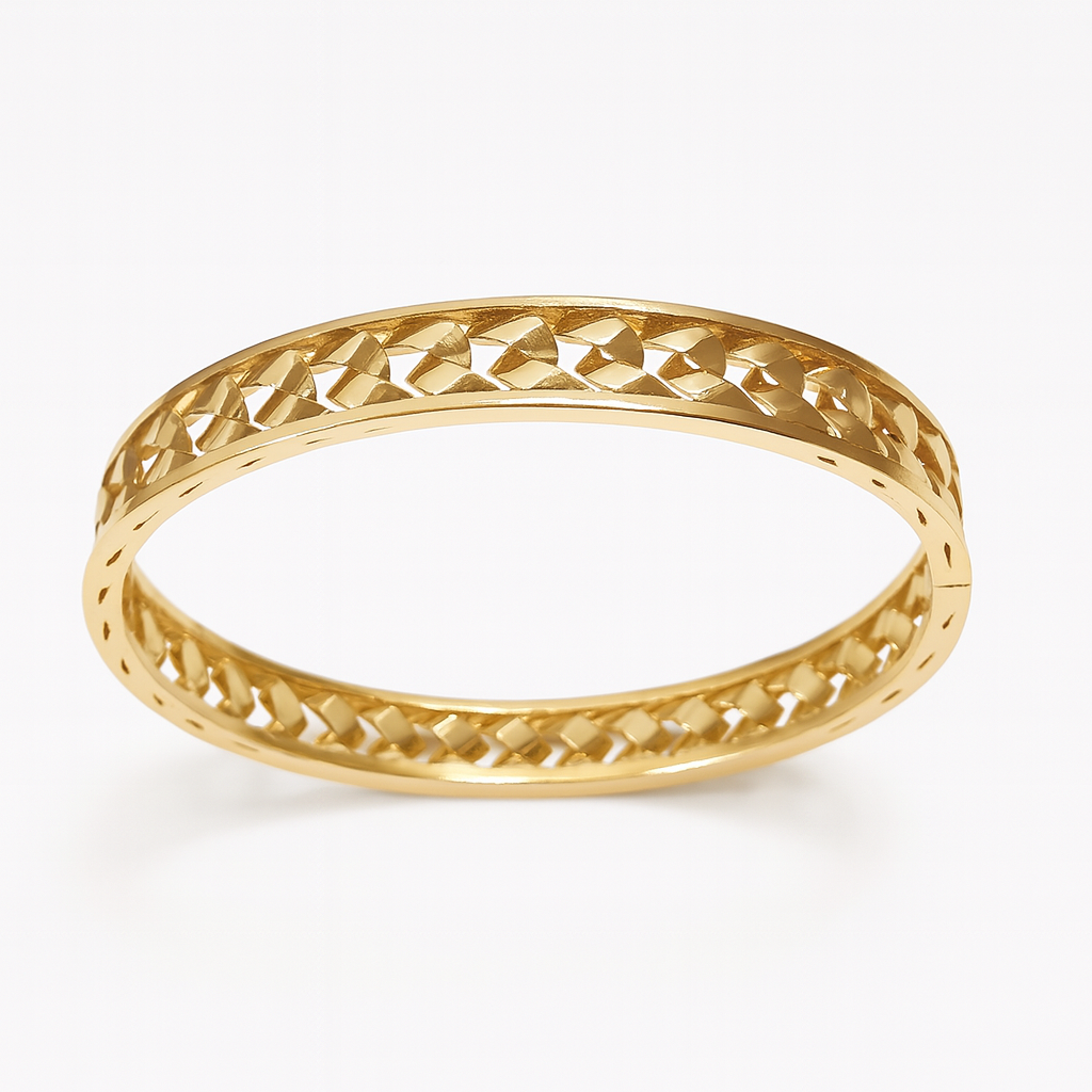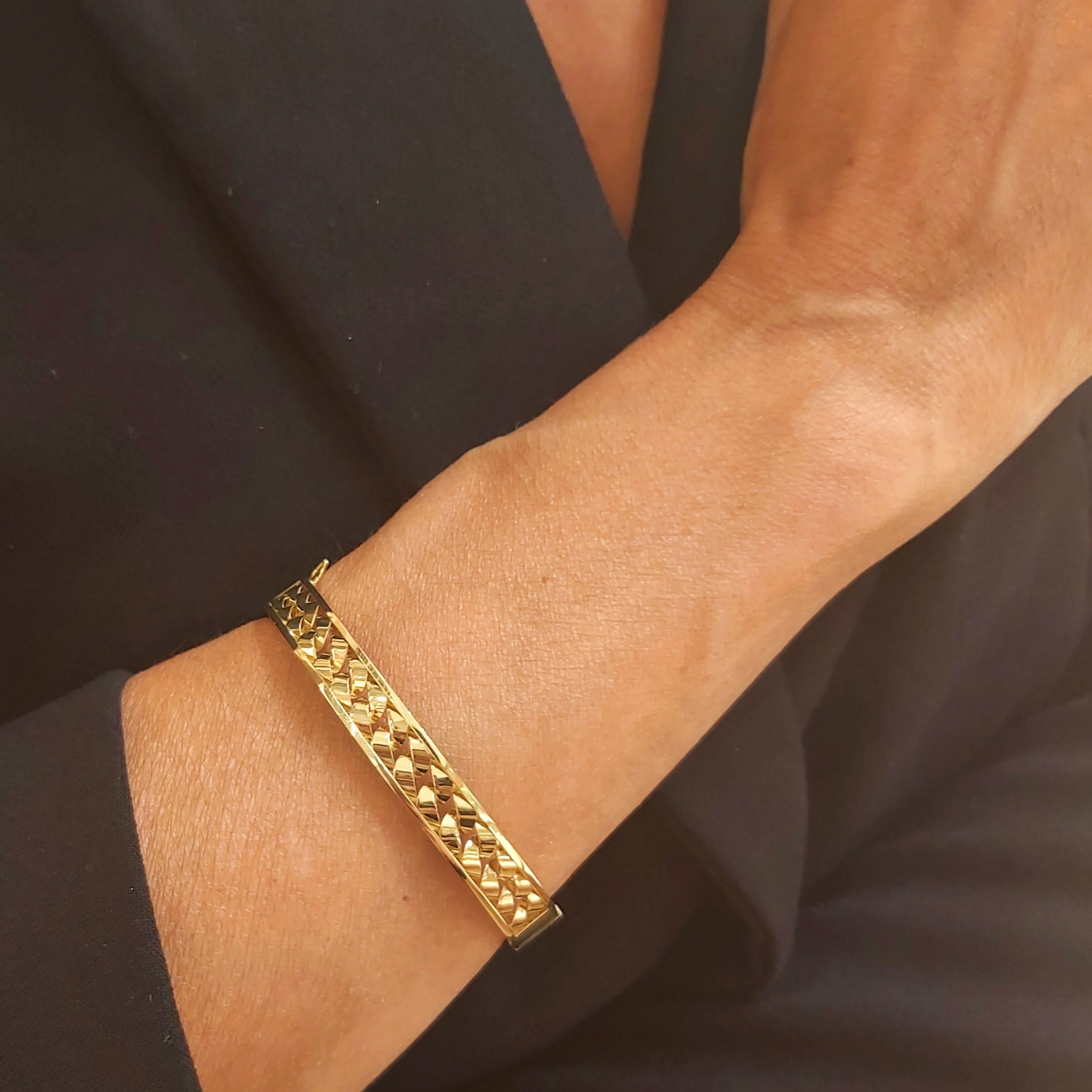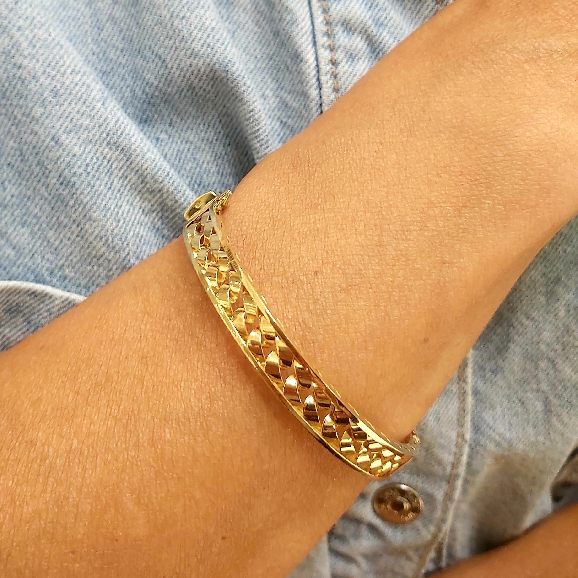 Złota szeroka ażurowa bransoletka mankietowa