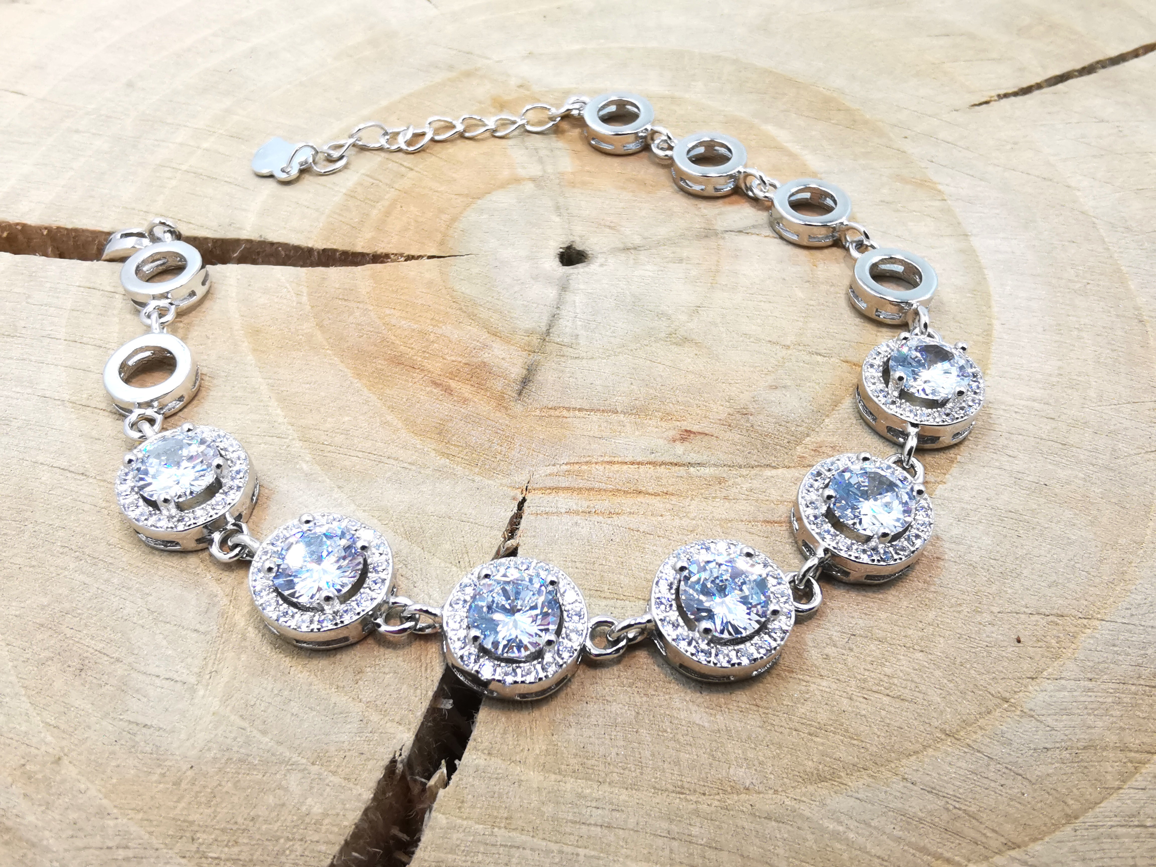 Bransoletka srebrna ozdobna z okrągłymi cyrkoniami