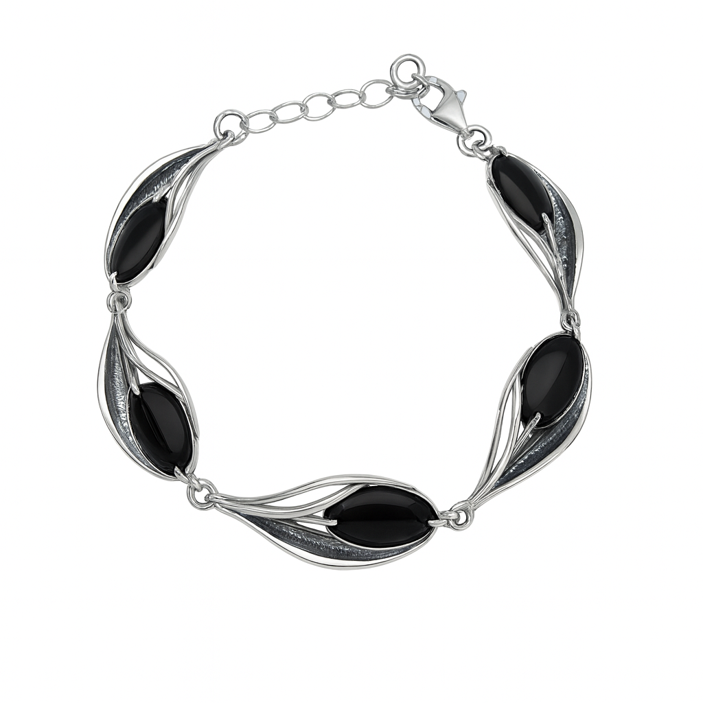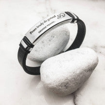 Czarna skórzana bransoletka ze srebrnymi wstawkami ze stali szlachetnej