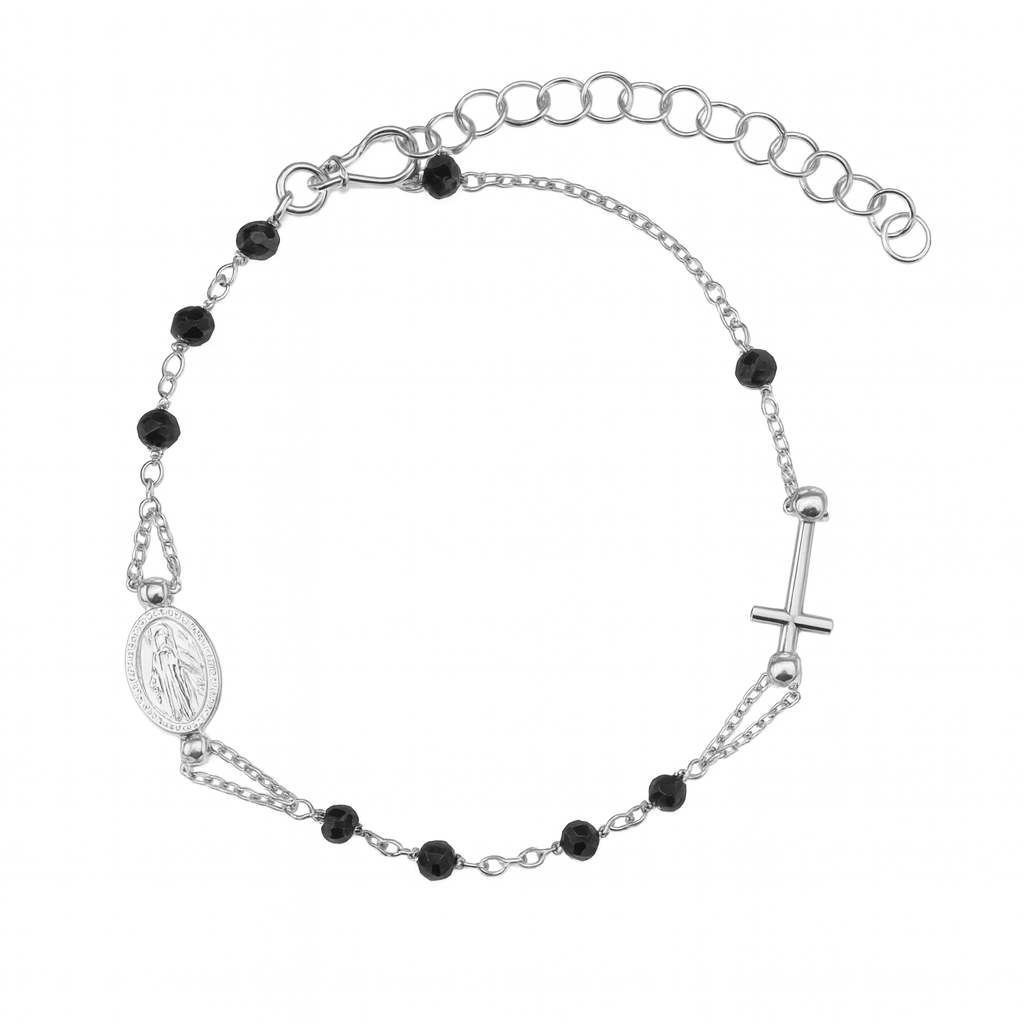 Bransoletka srebrna podwójna różaniec z czarnymi koralikami