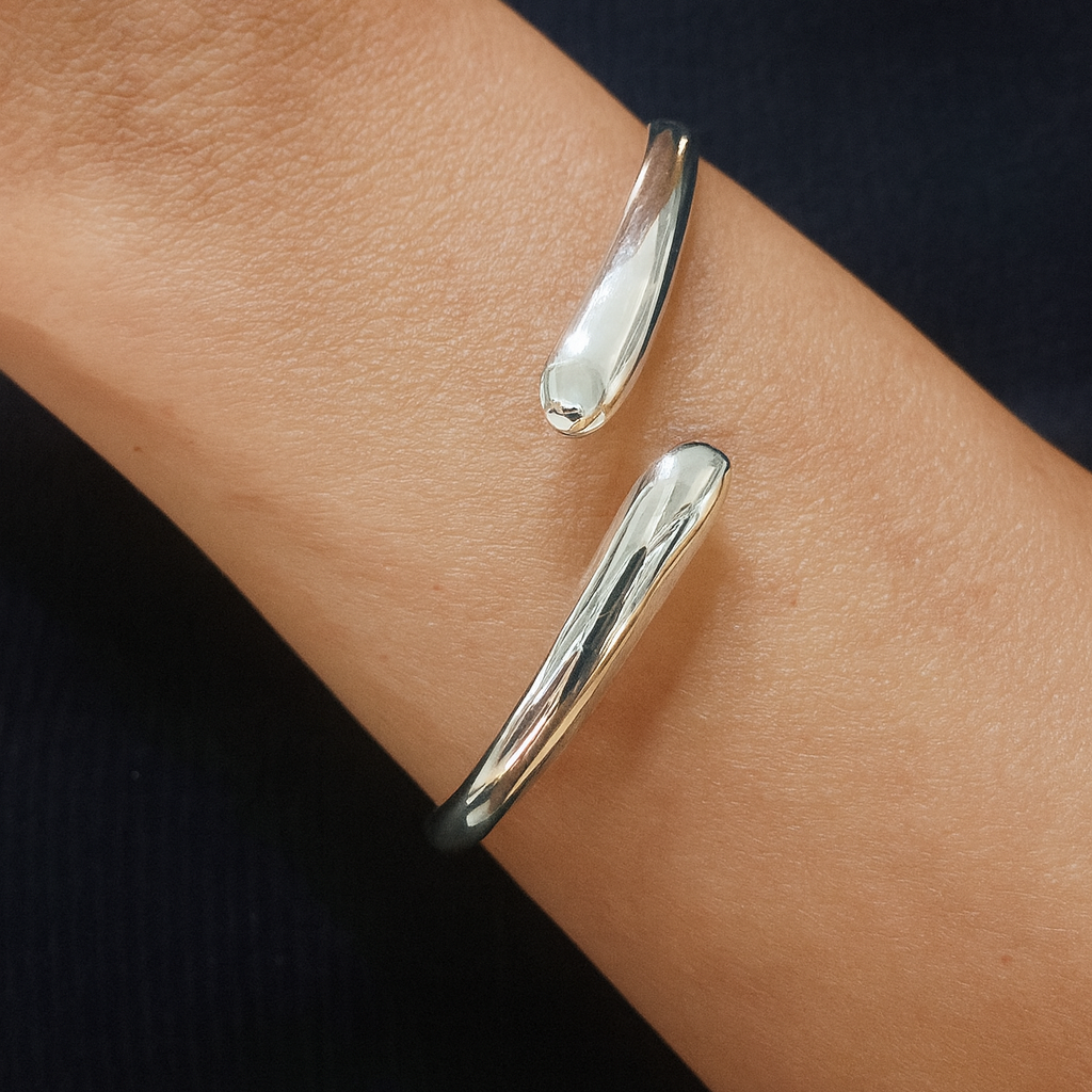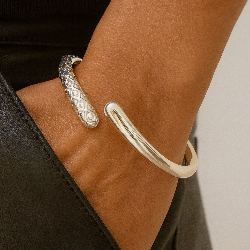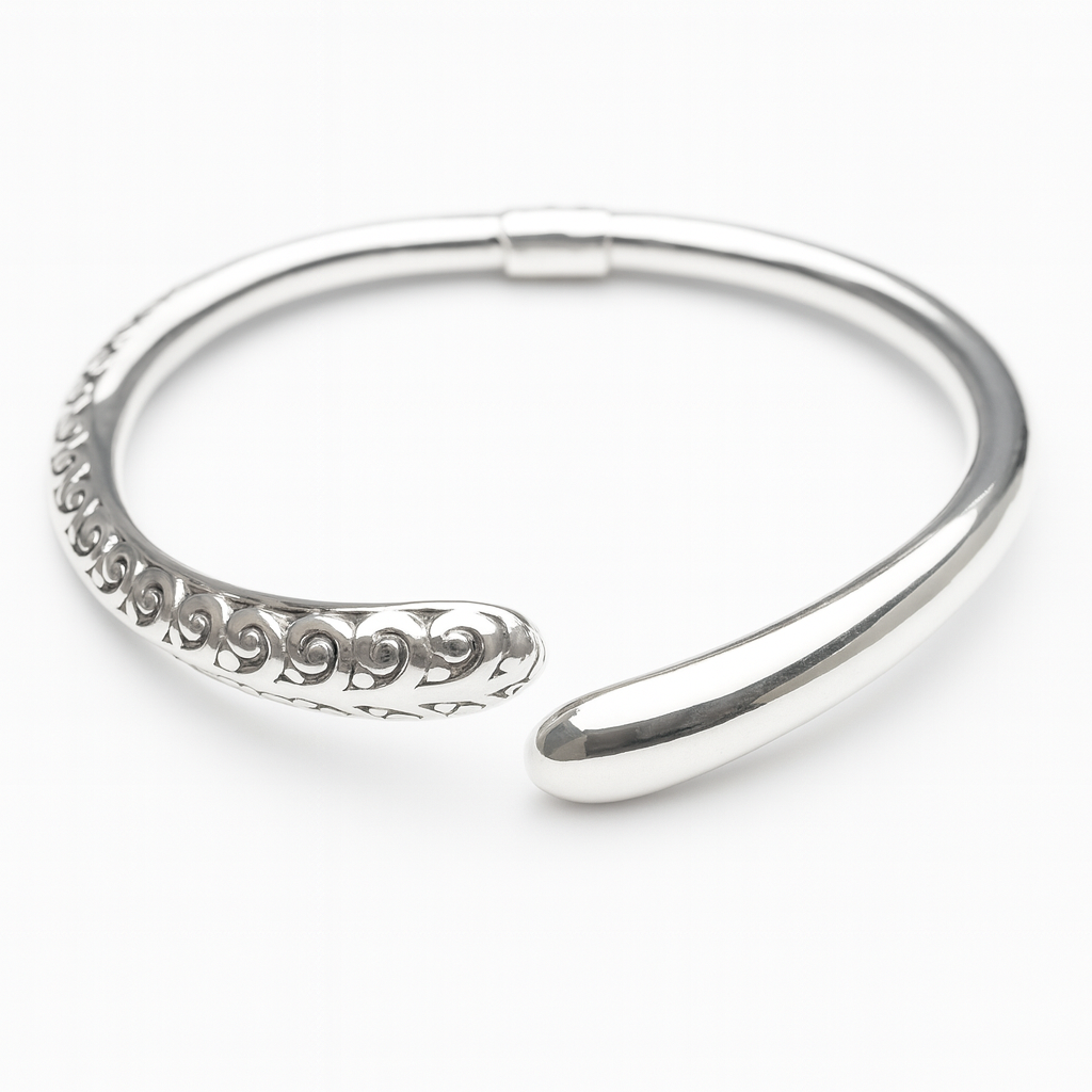 Bransoletka srebrna mankietowa z ozdobnym grawerem