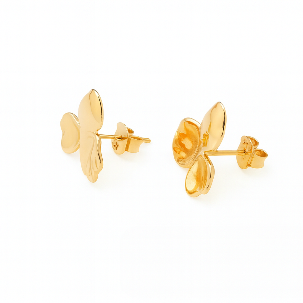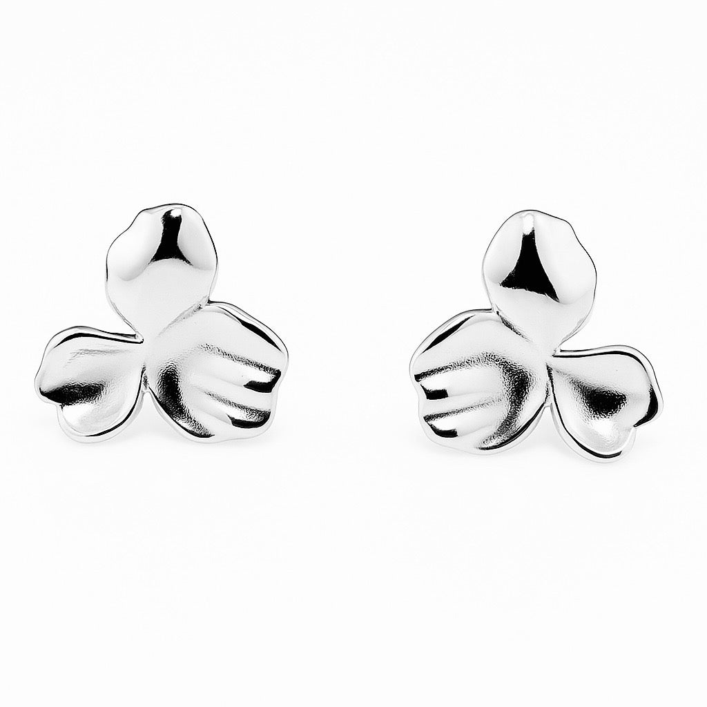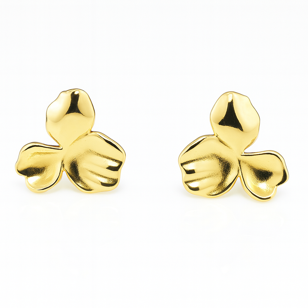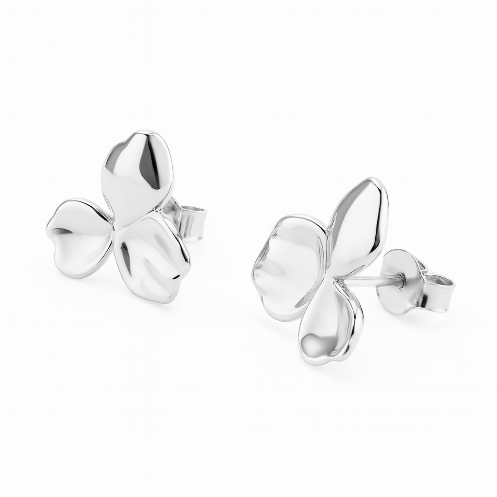 Srebrne pozłacane kolczyki koniczyny na sztyfcie