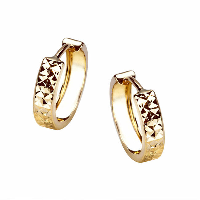 Złote kolczyki małe szerokie koła diamentowane