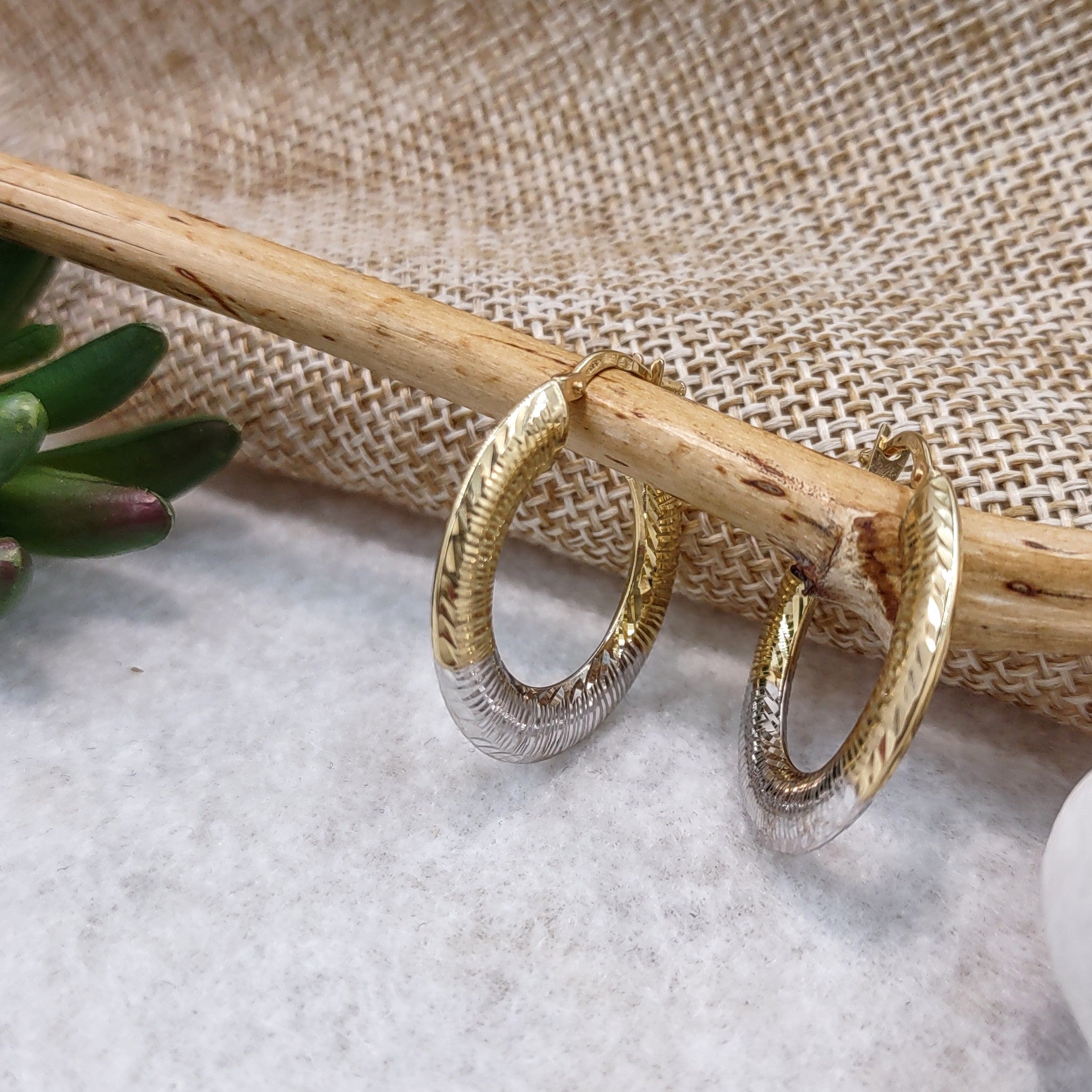 Kolczyki nieregularne koła z dwukolorowego złota
