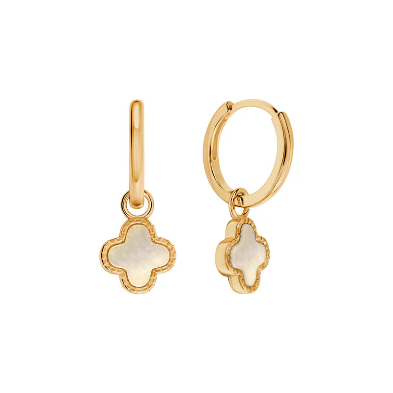 Kolczyki srebrne pozłacane z koniczyną z masą perłową