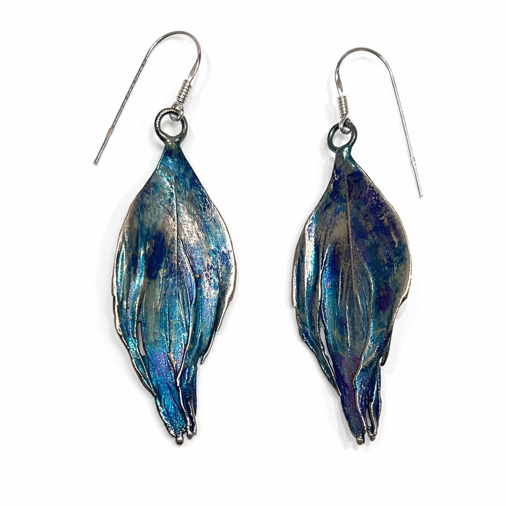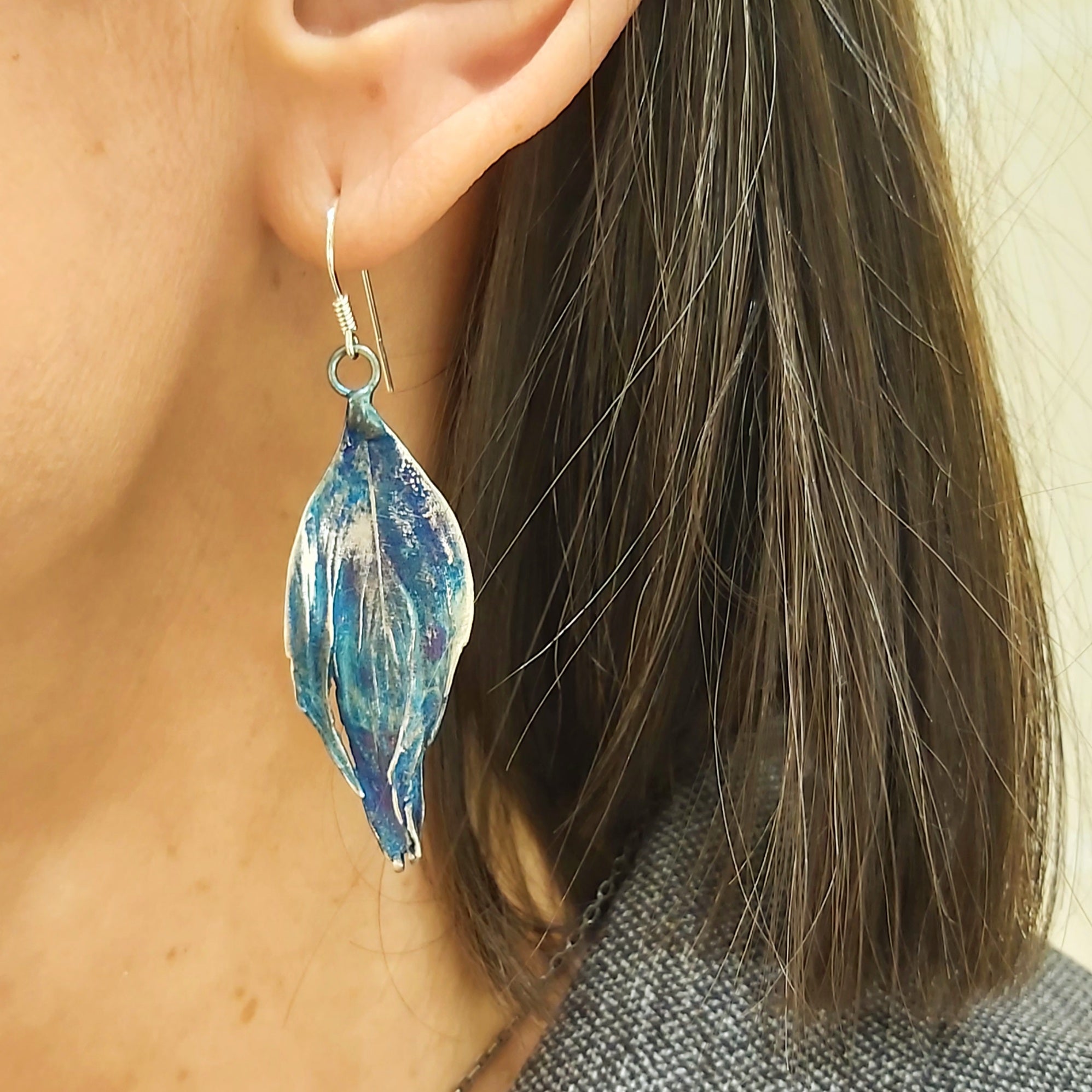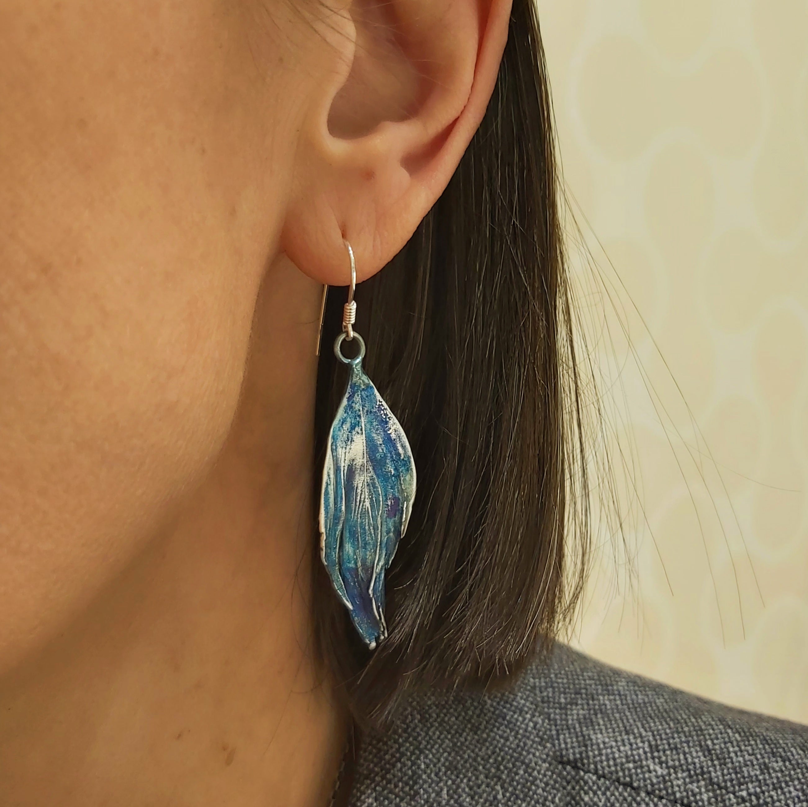 Kolczyki artystyczne błękitno-srebrne pióra Dorian Grabowski