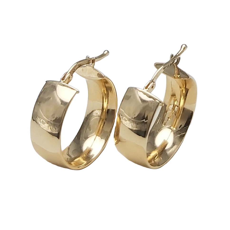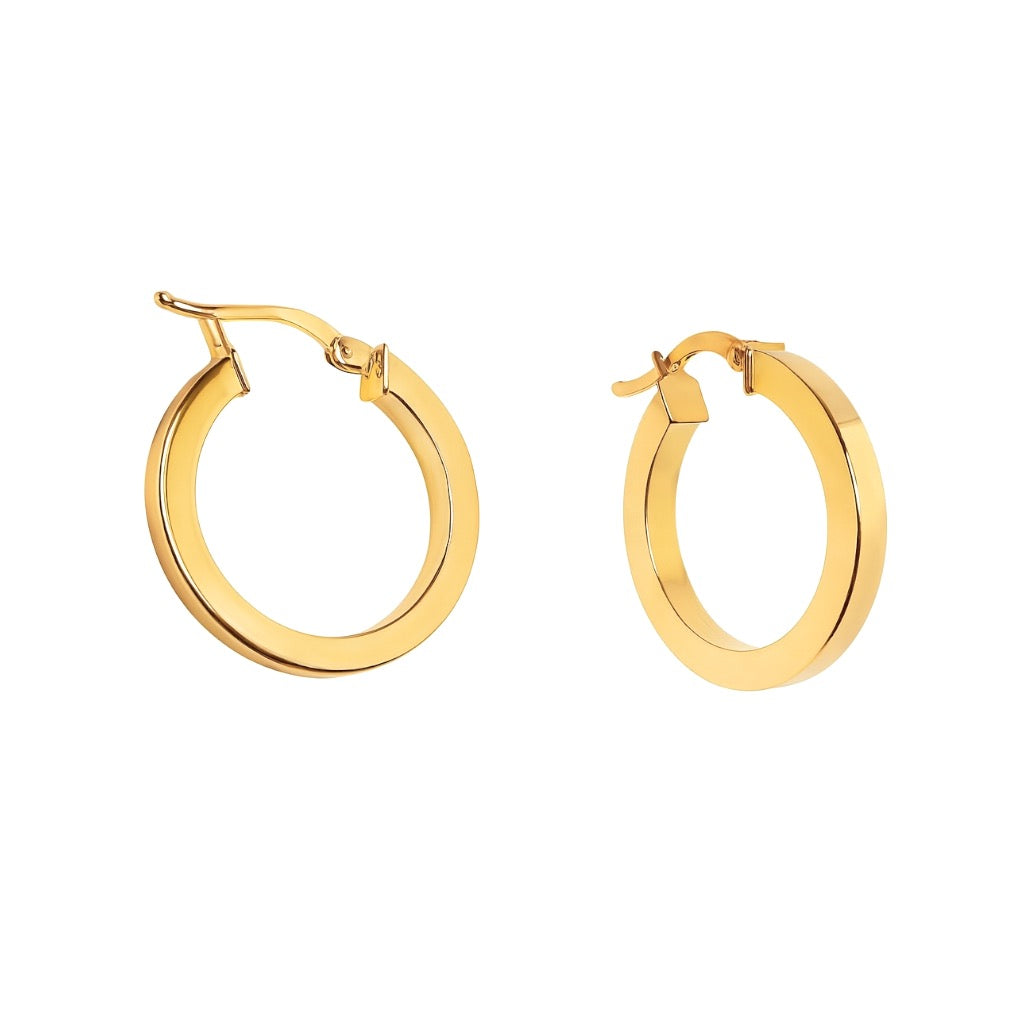 Złote kolczyki koła kreolki w kwadratowym przekroju