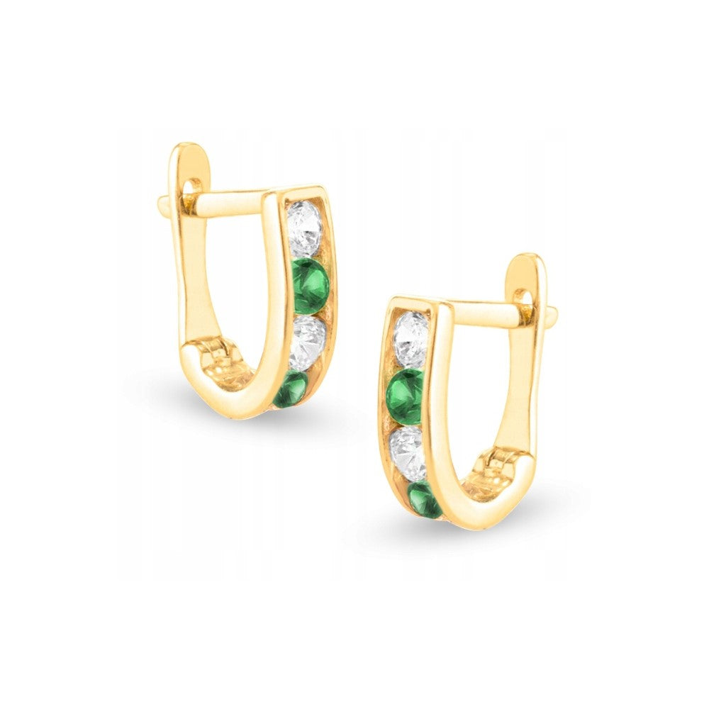 Złote kolczyki dziecięce z białymi i zielonymi cyrkoniami