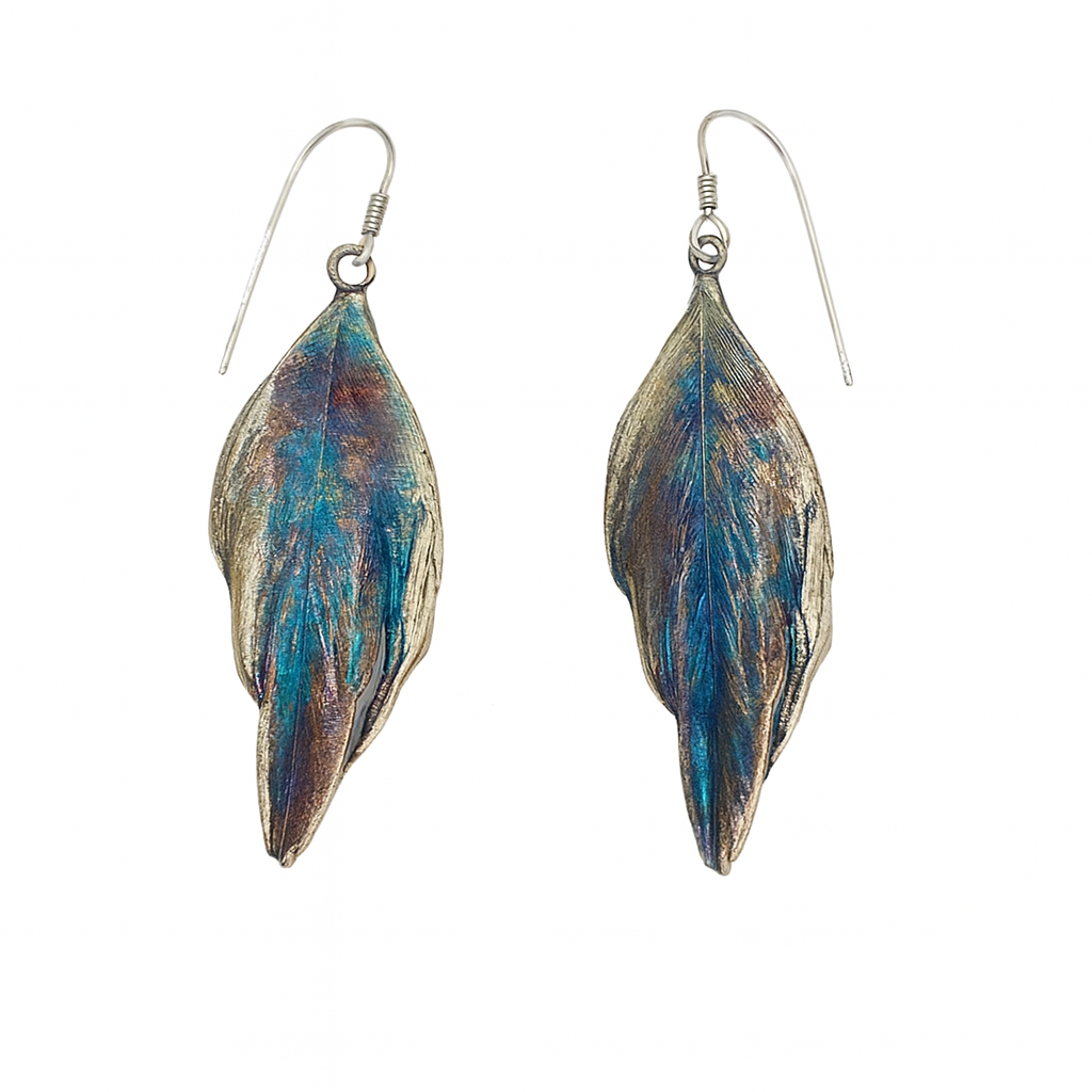 Kolczyki artystyczne błękitno-srebrne pióra Dorian Grabowski