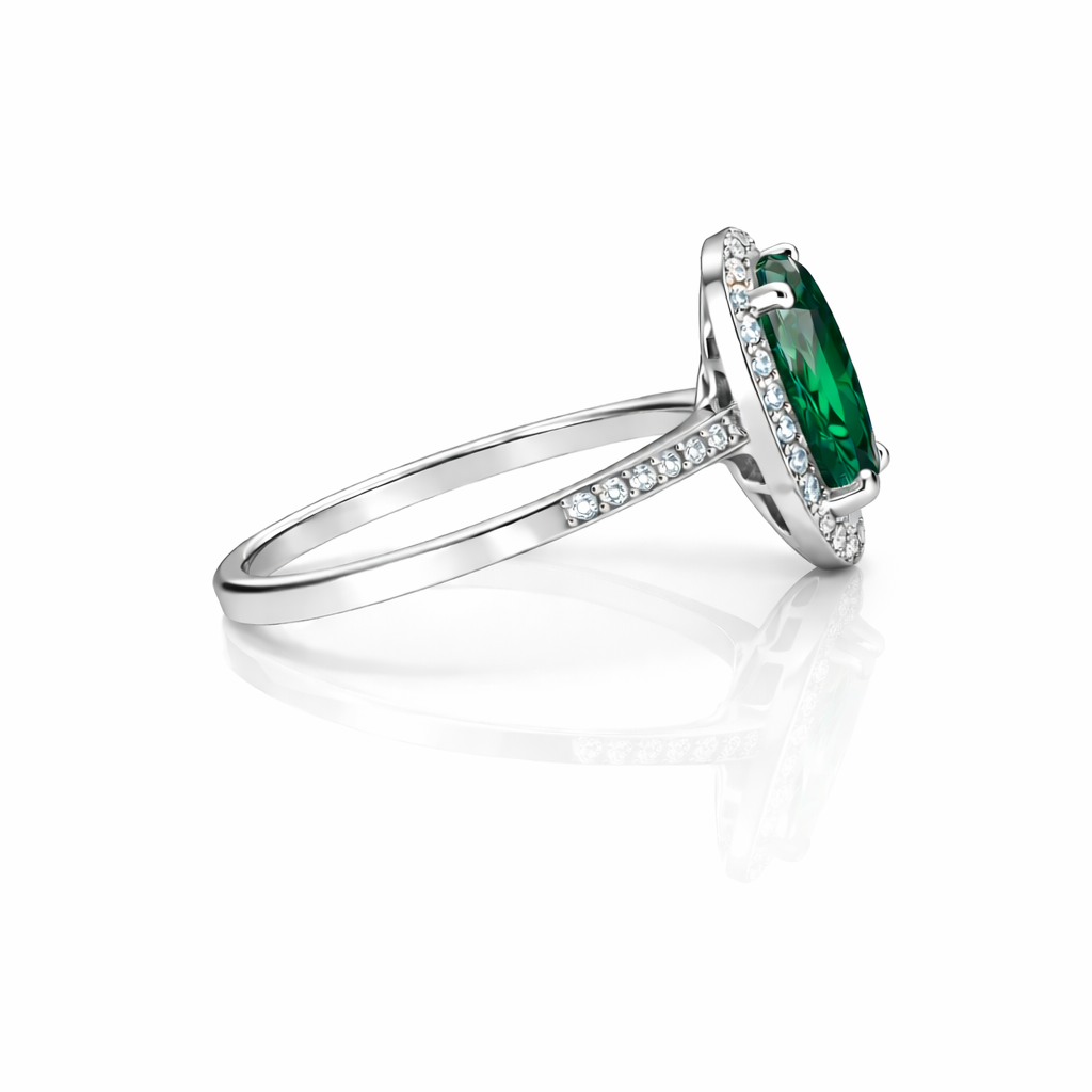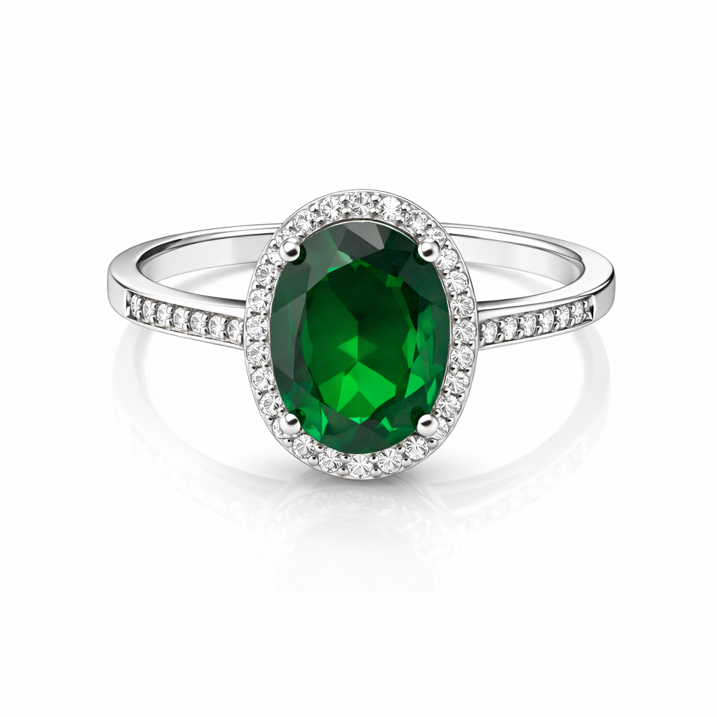 Srebrny pierścionek owalny z zieloną cyrkonią