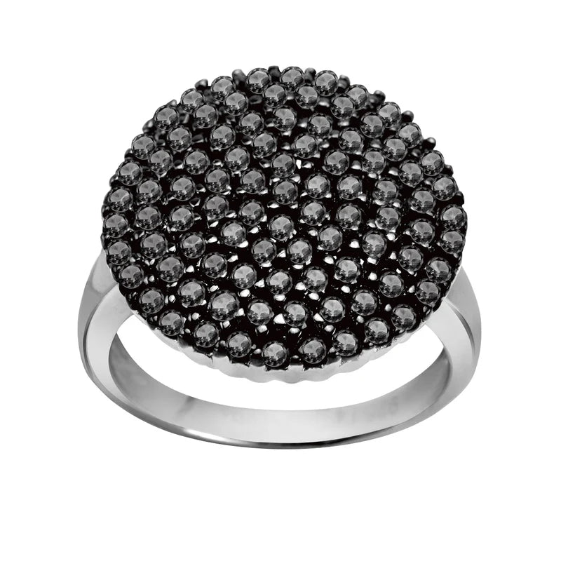 Pierścionek srebrny okrągły z czarnymi cyrkoniami
