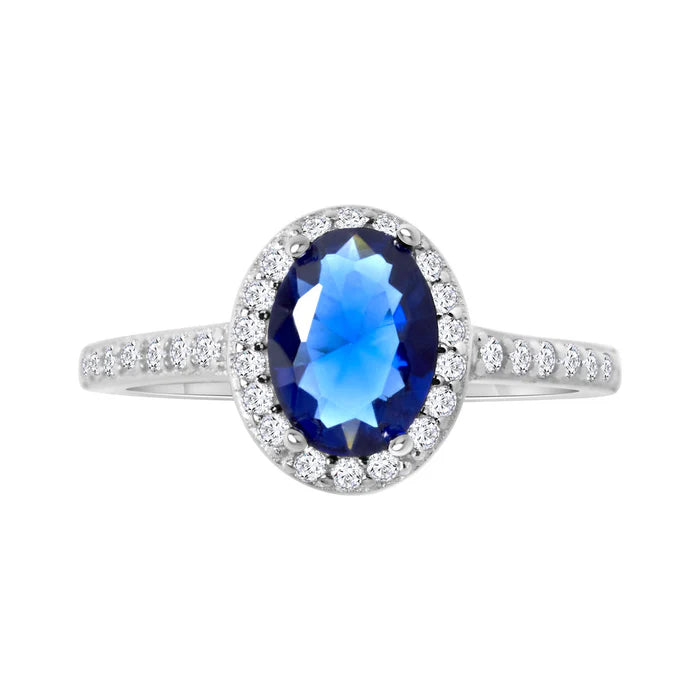 Srebrny pierścionek z granatową cyrkonią princess