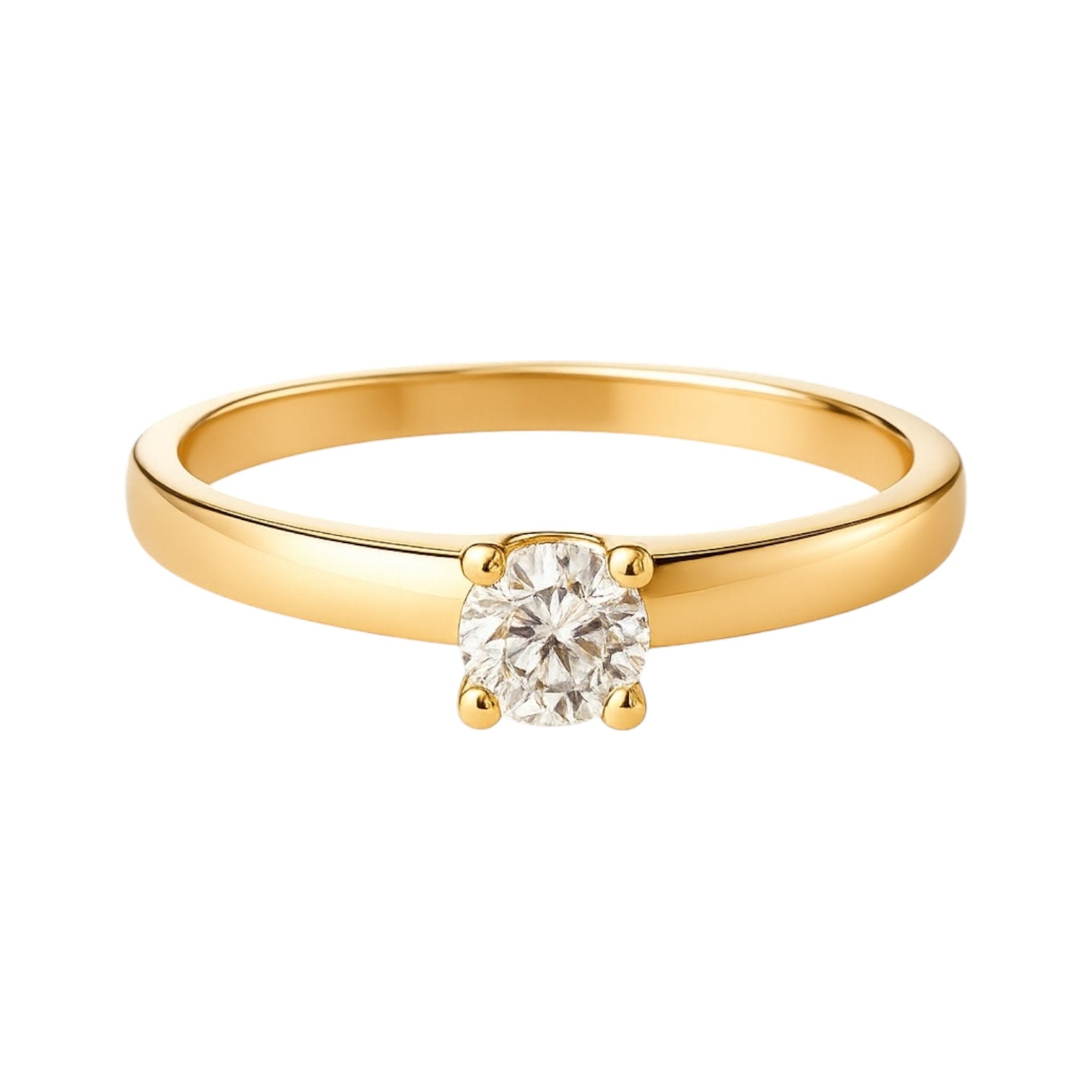 Pierścionek złoty z białą cyrkonią w sześciu łapkach