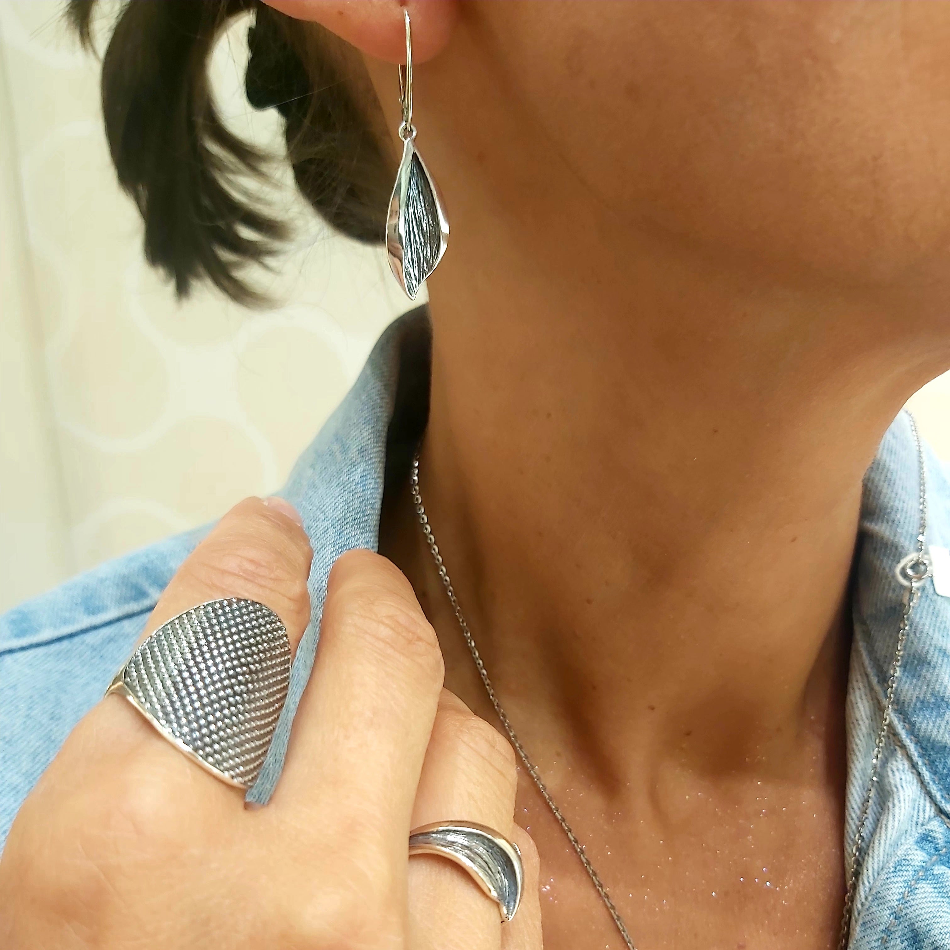 Pierścionek mały z oksydowanego srebra z masą perłową