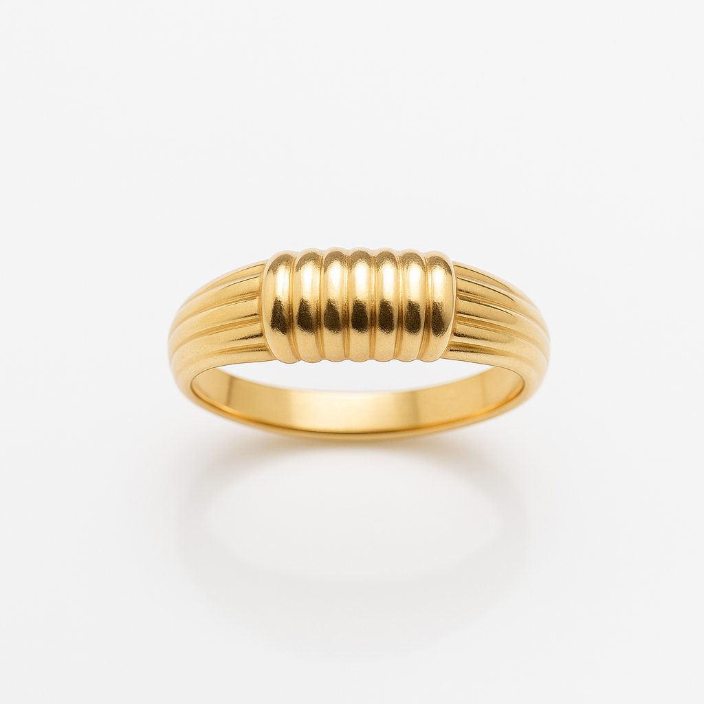 Złoty pierścionek ażurowy z motywem kwiatowym