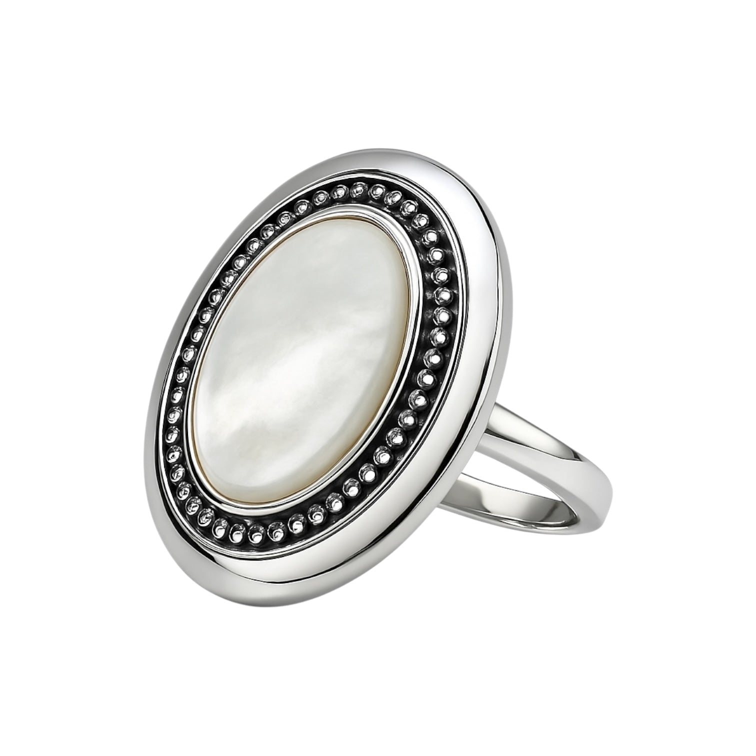 Pierścionek duży z oksydowanego srebra z masą perłową