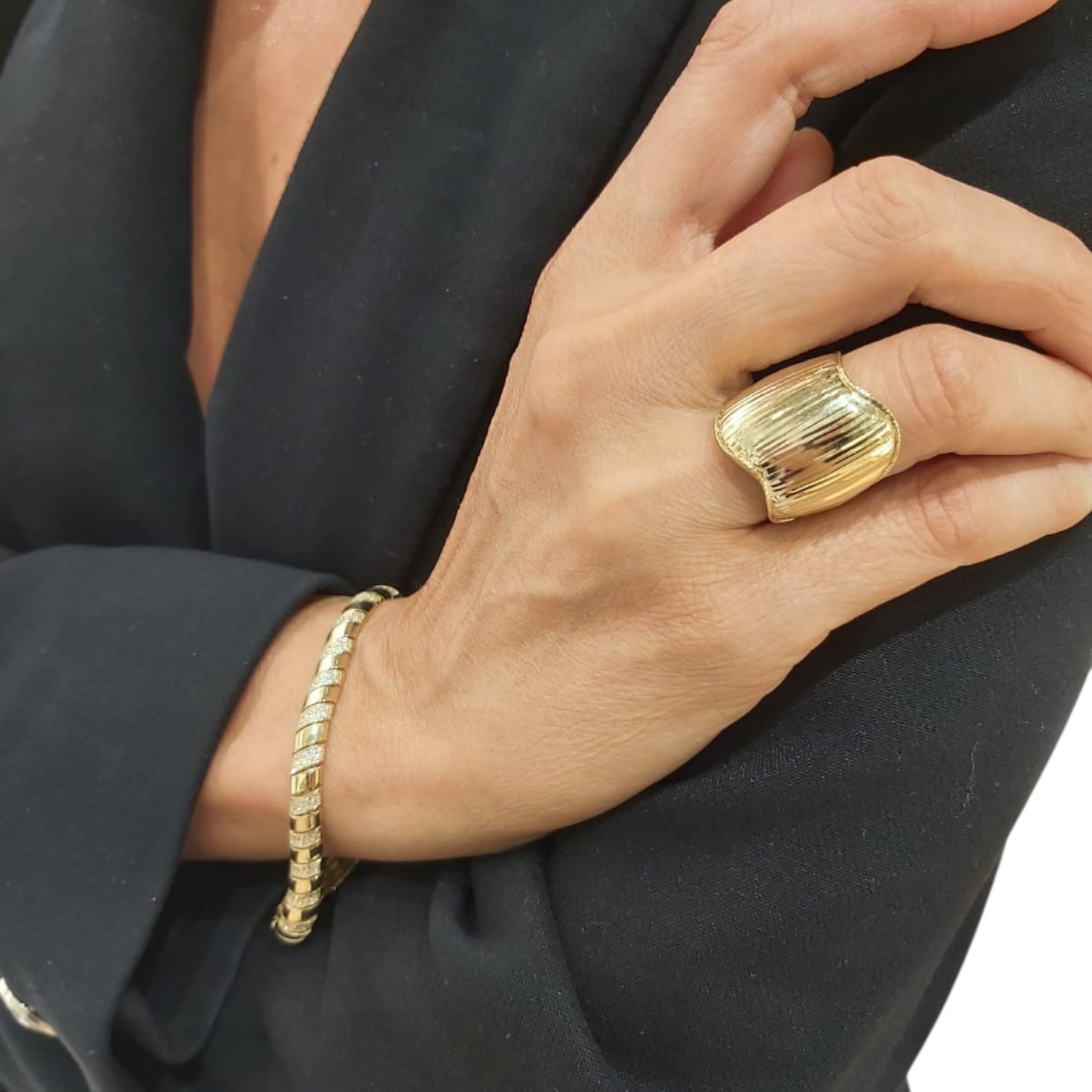 Pierścionek złoty szeroki ryflowany