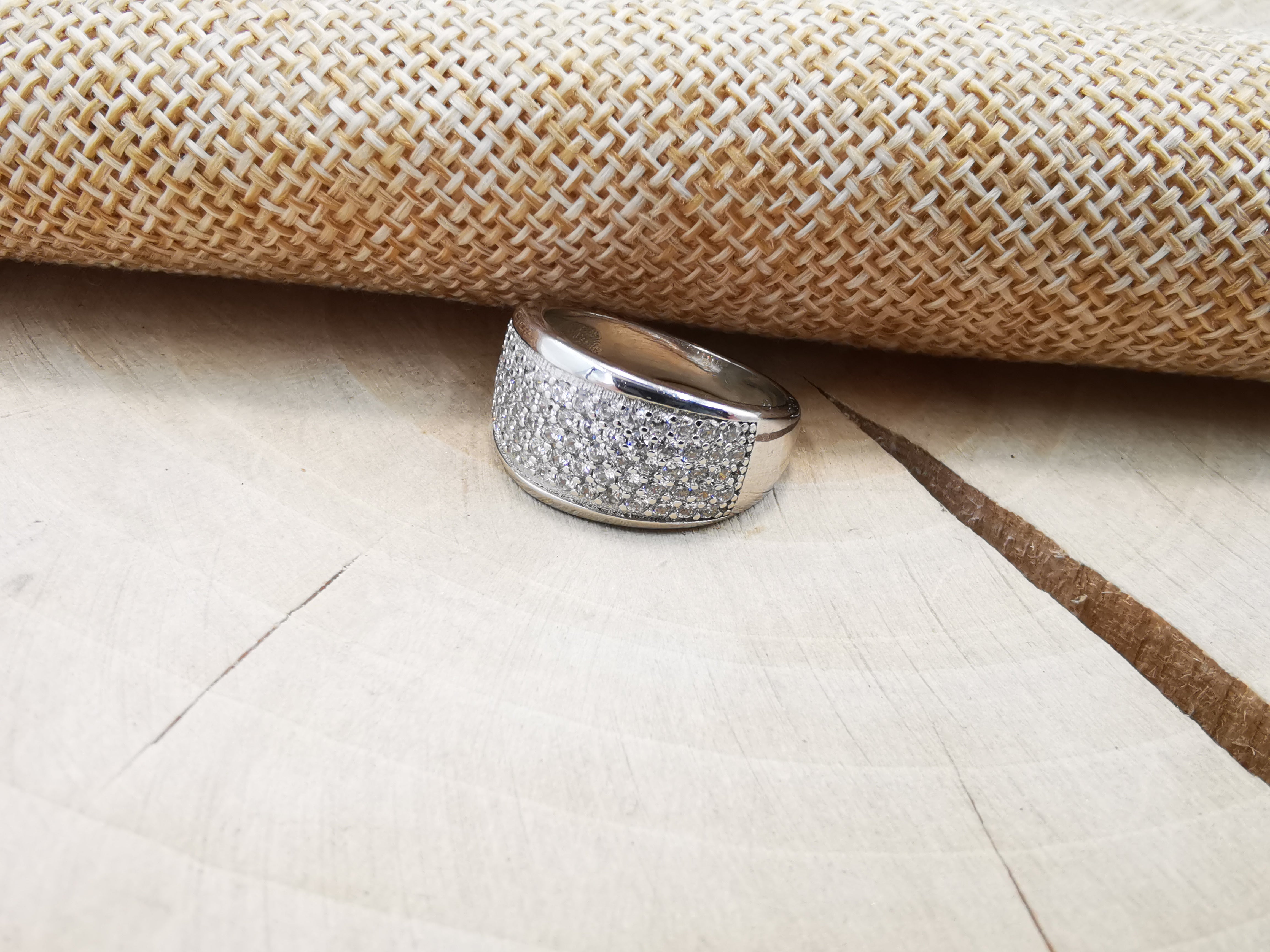 Duży srebrny pierścionek z granatową cyrkonią princess