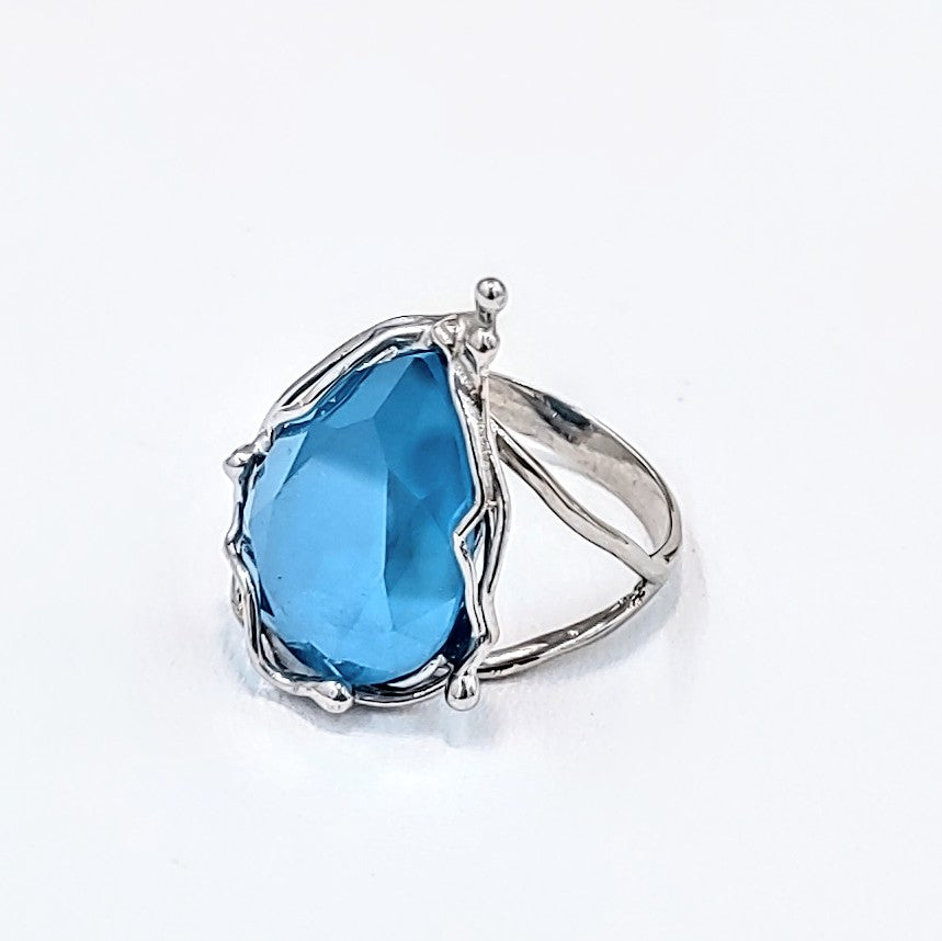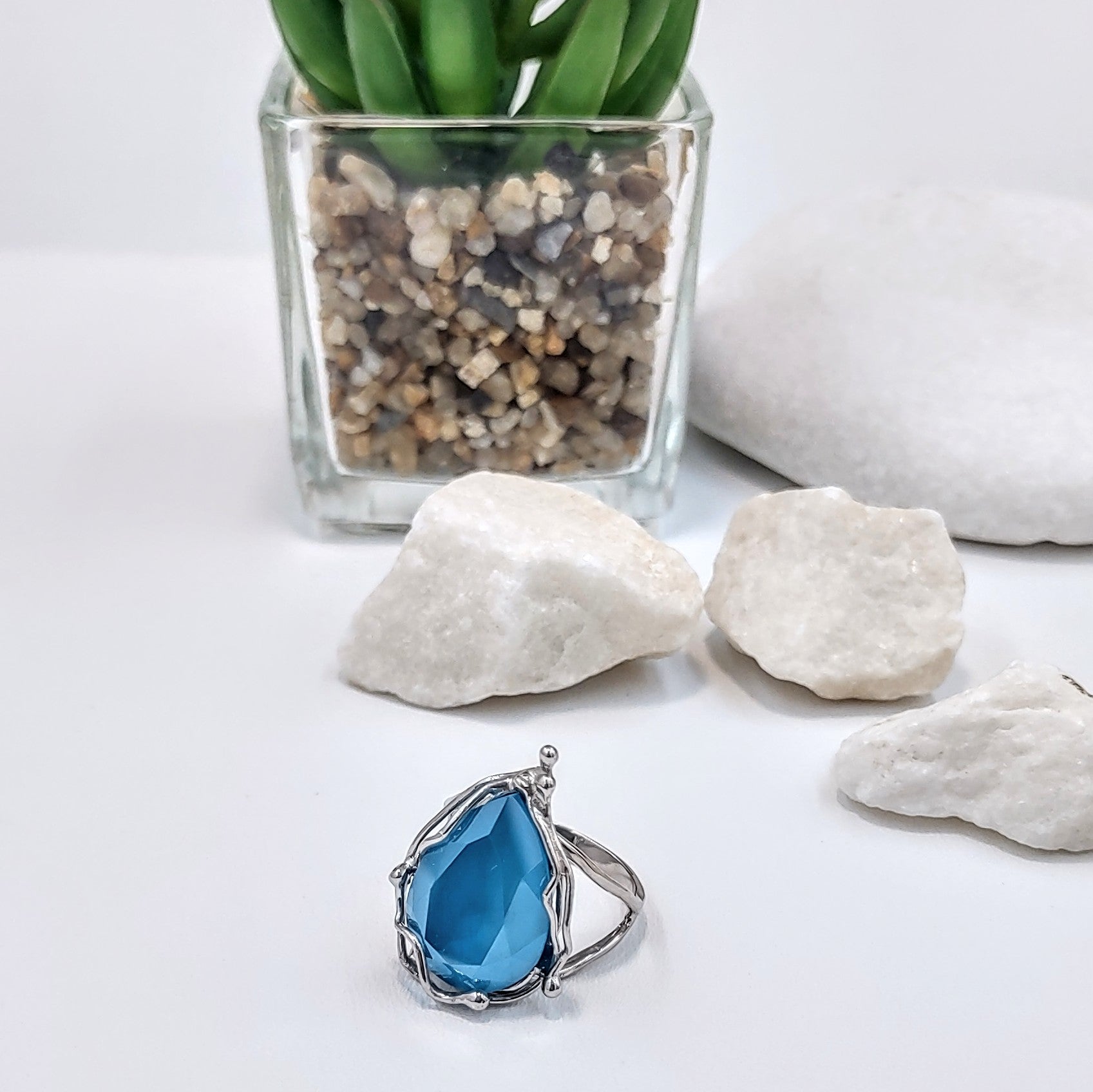 Pierścionek srebrny błękitny z kryształem Swarovskiego