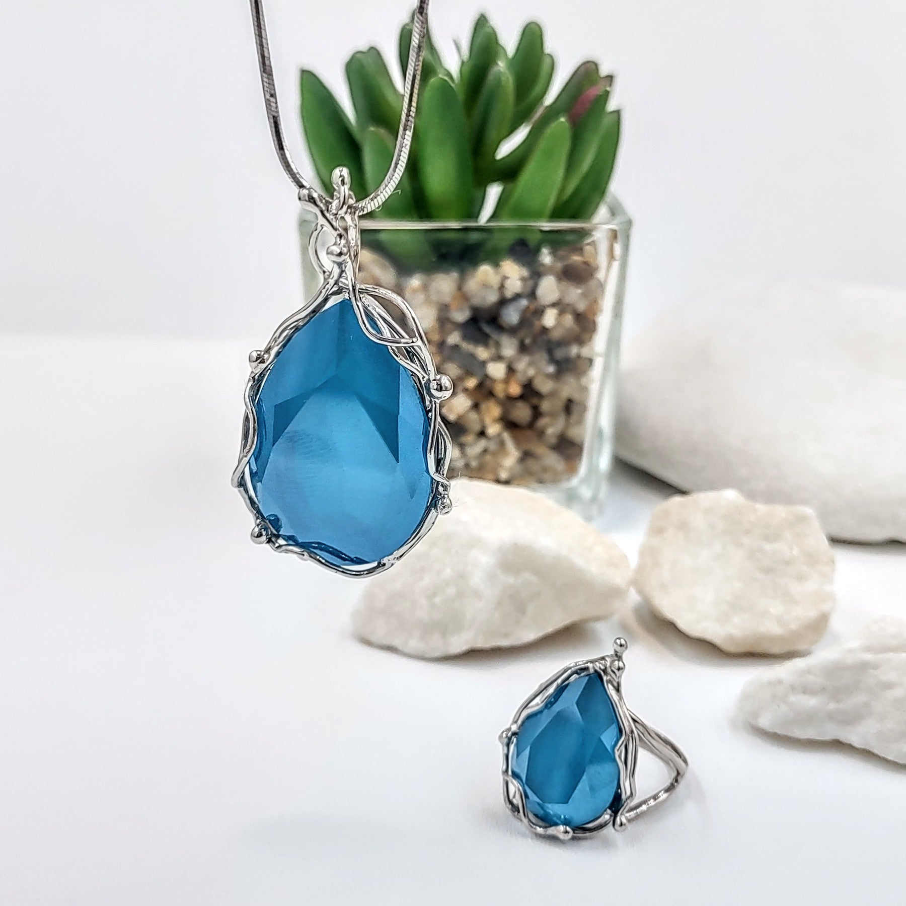 Pierścionek artystyczny niebieski "koronka" Dorian Grabowski