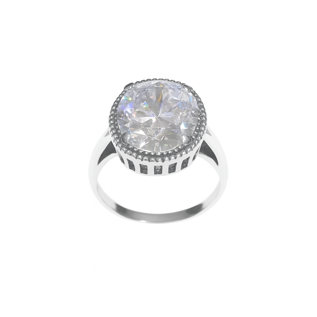 Pierścionek srebrny z dużą szlifowaną cyrkonią