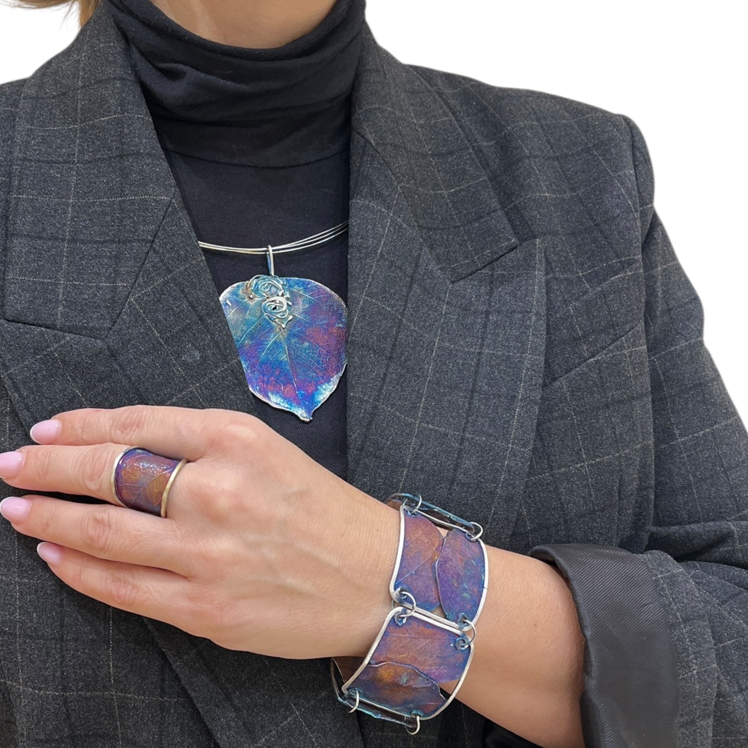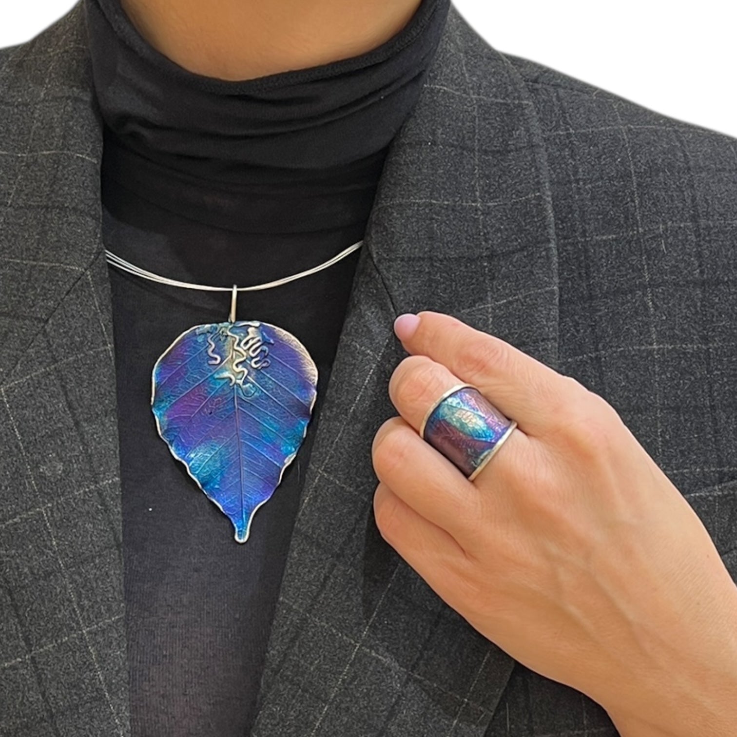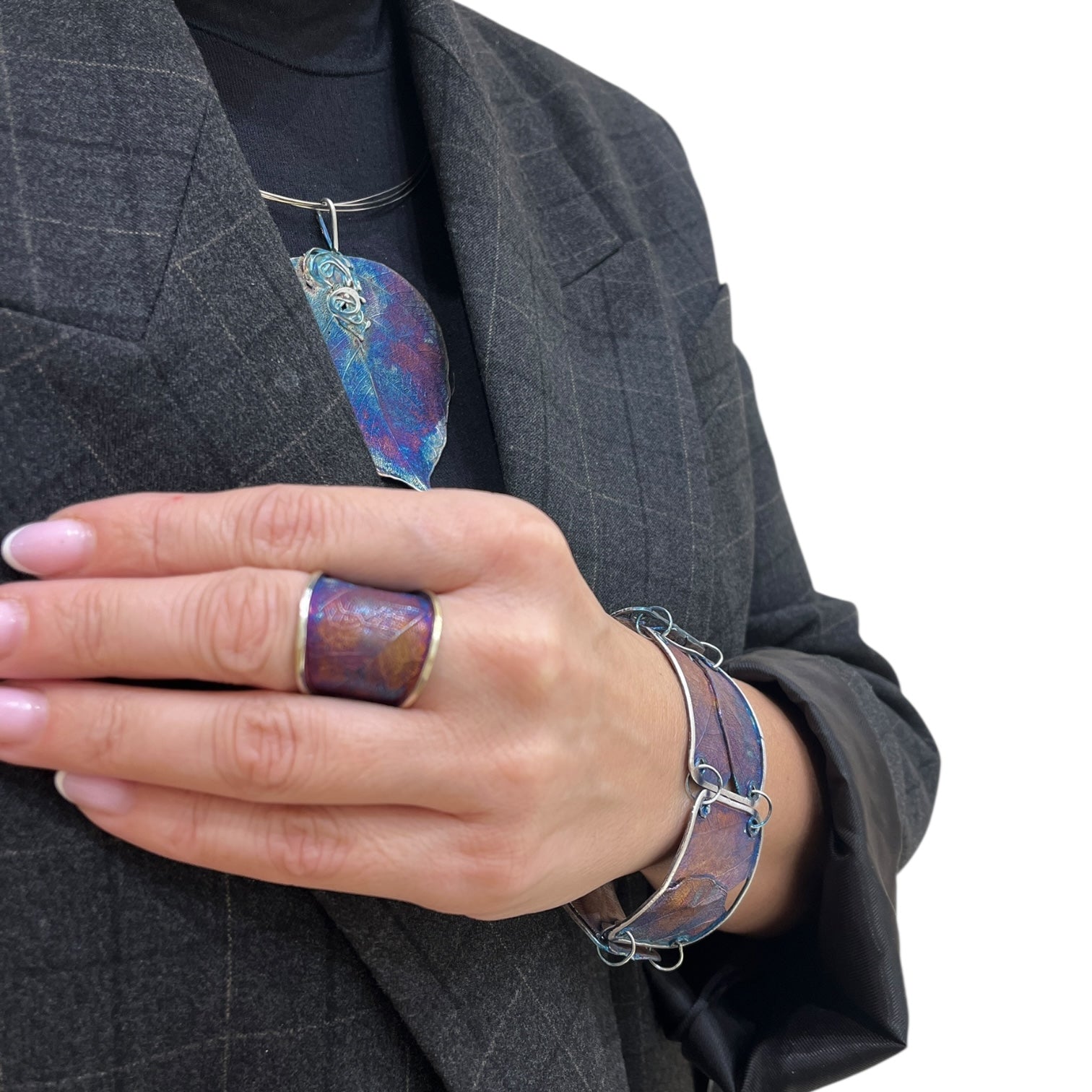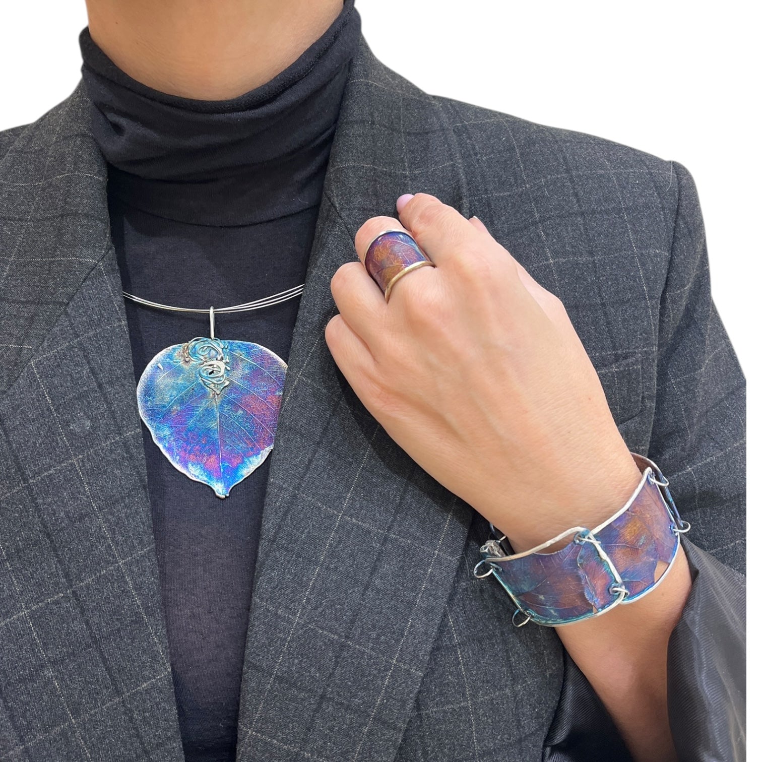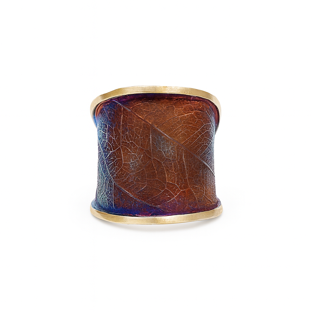 Pierścionek artystyczny fioletowo złoty liść Dorian Grabowski