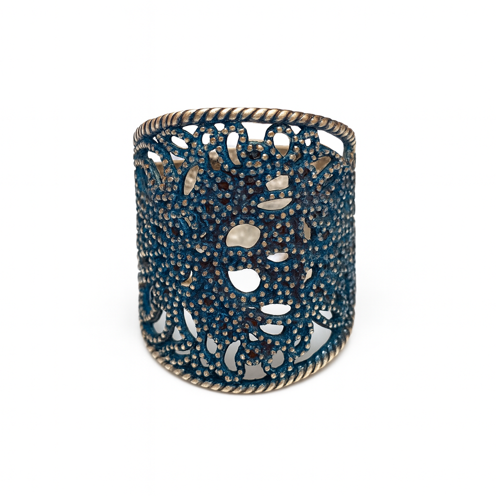 Pierścionek artystyczny niebieski koronkowy Dorian Grabowski