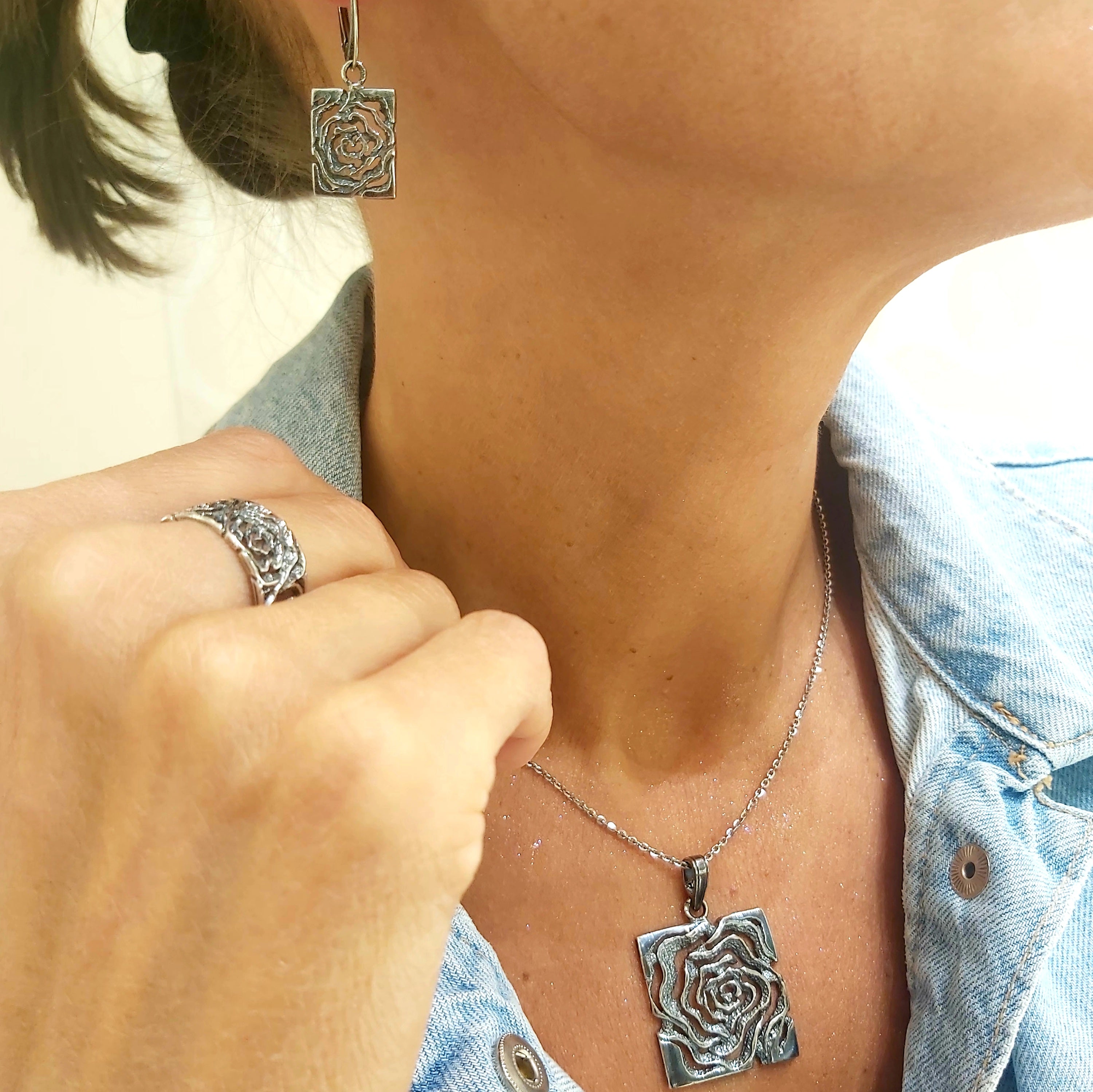Pierścionek srebrny z różą -obrączka