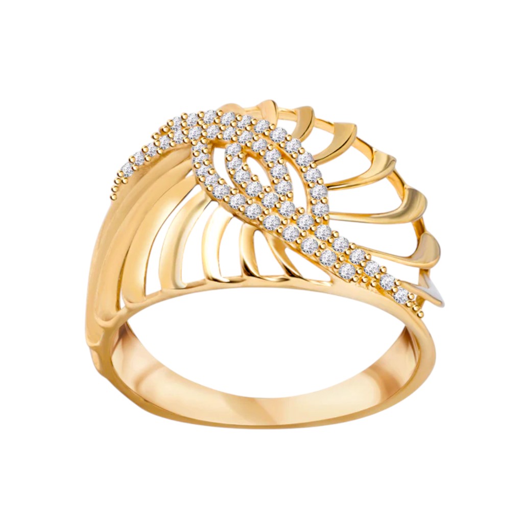 Złoty szeroki pierścionek z ażurowym wzorem i cyrkoniami